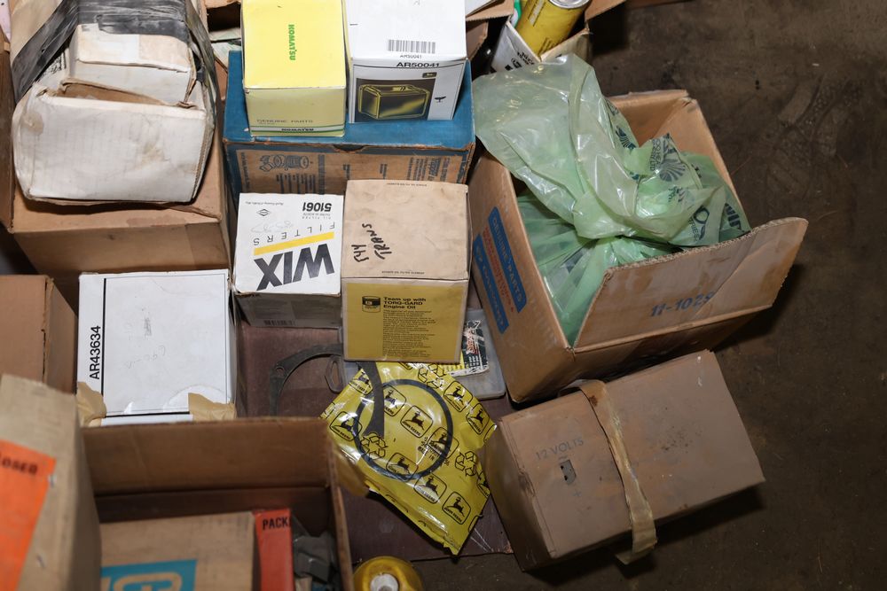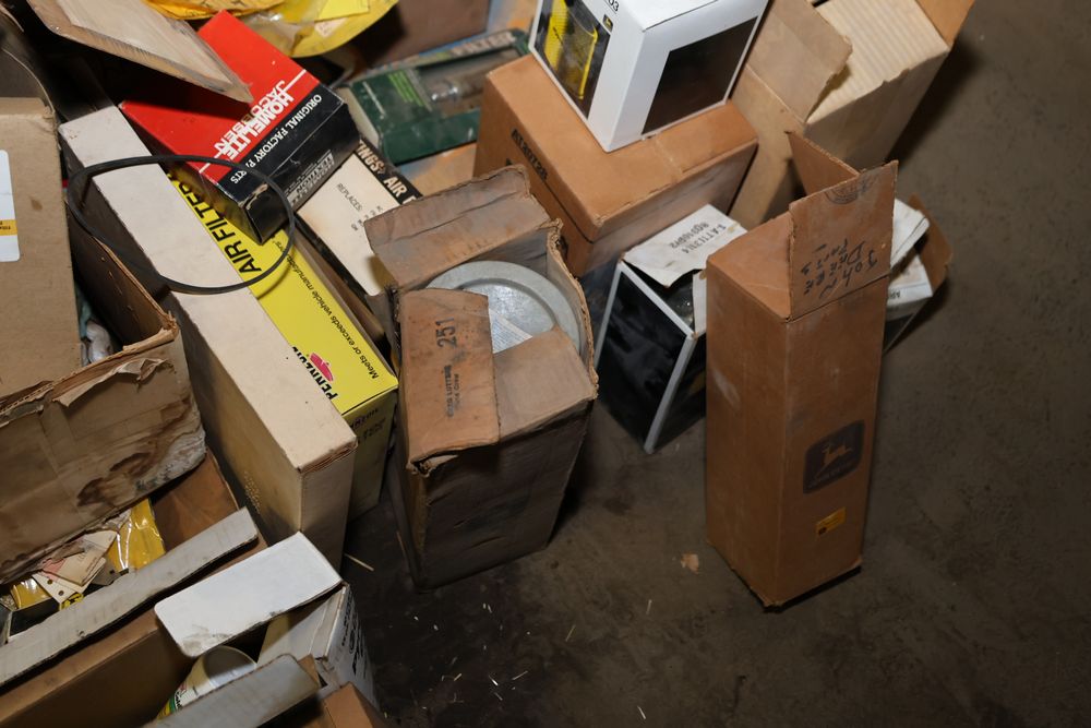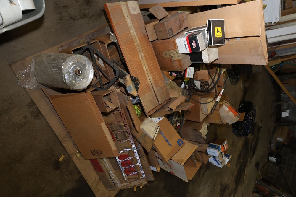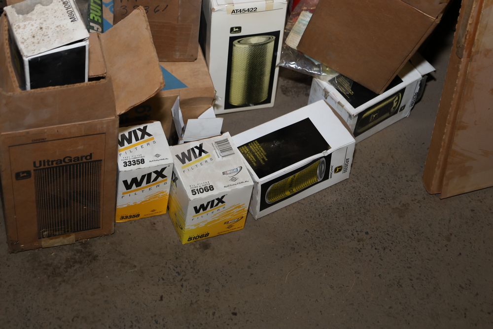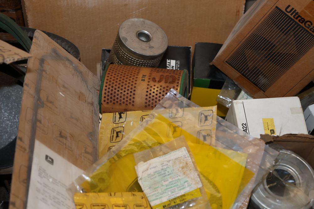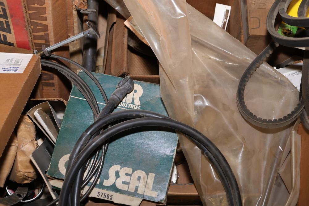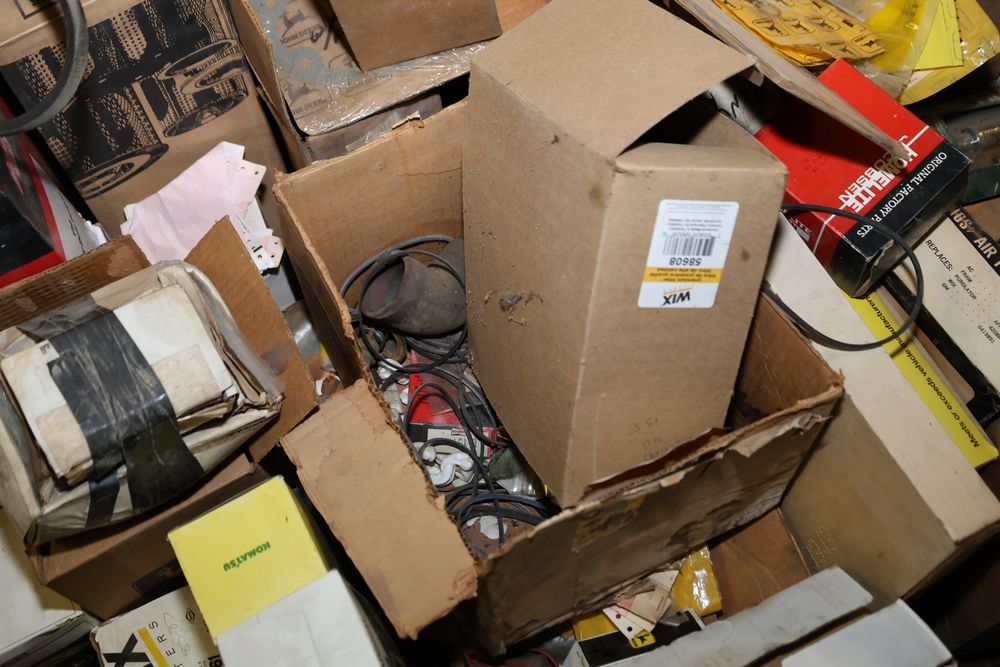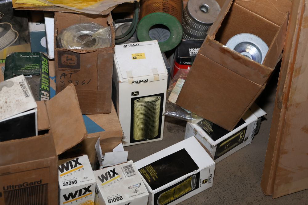 Automotive and equipment parts including filters, seals, bearings, hoses, and more. The assortment includes boxed and loose items from various manufacturers and brands. The inventory features gaskets, belts, and other replacement parts suitable for machinery and automotive use. Buyer must take all. Pickup only.
