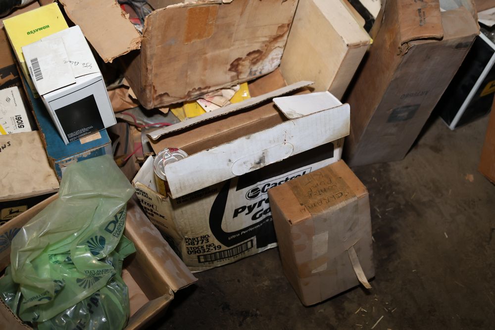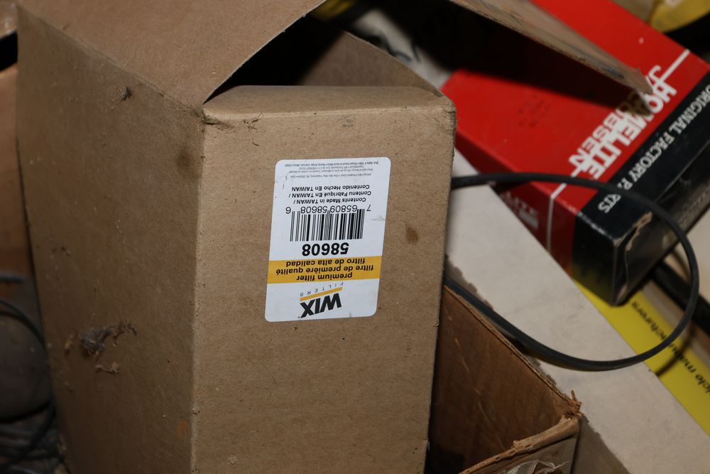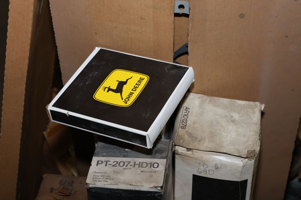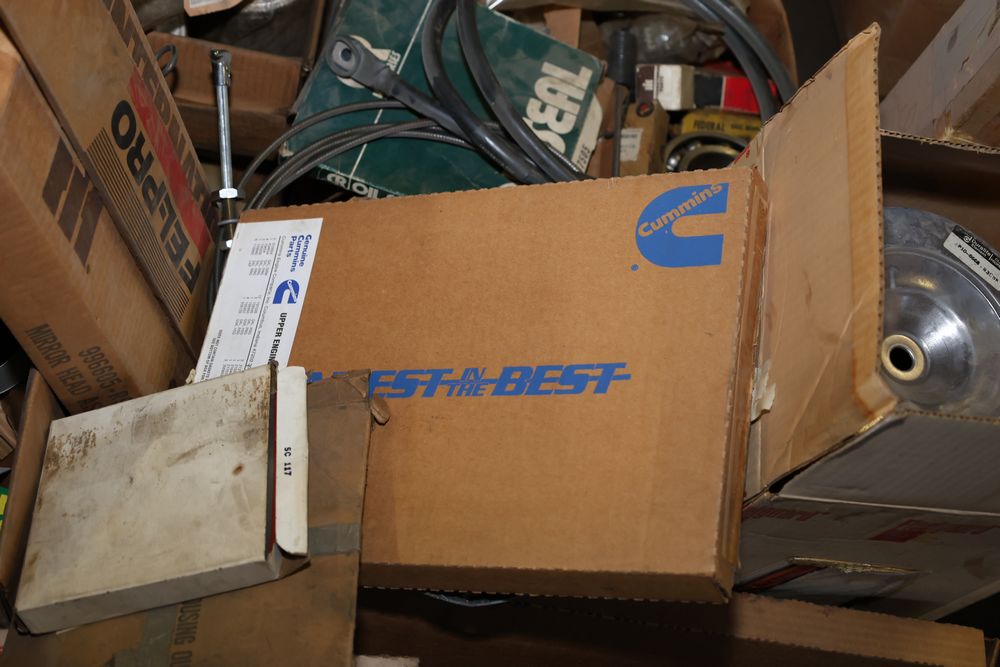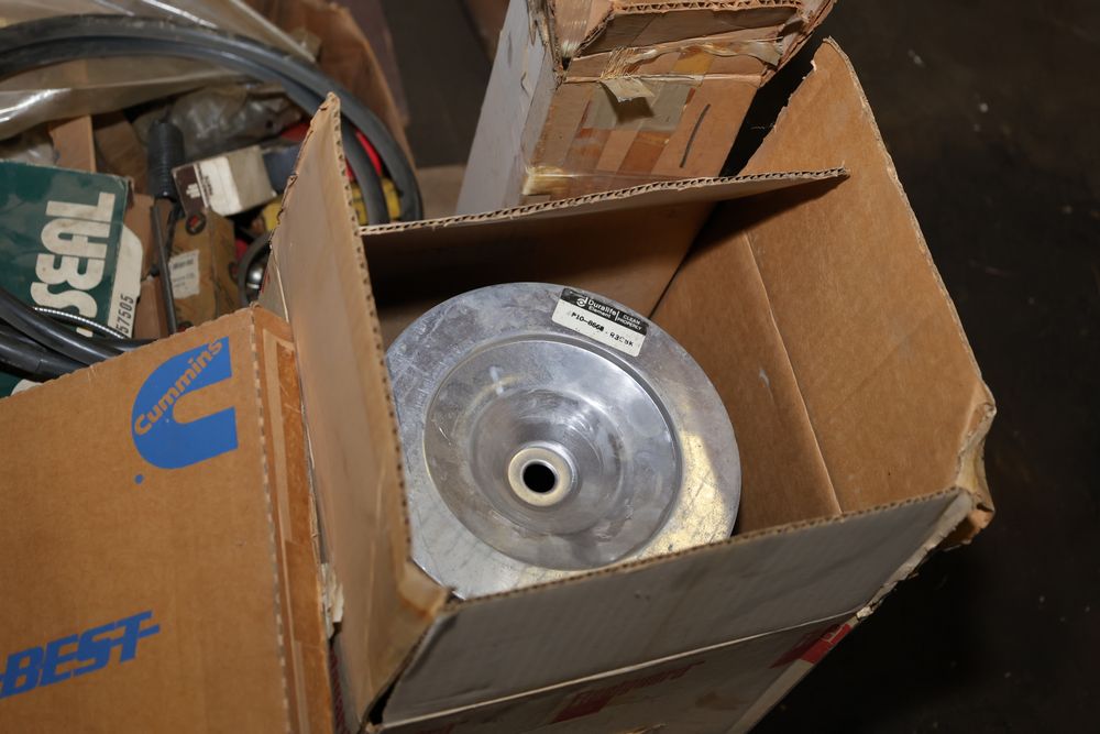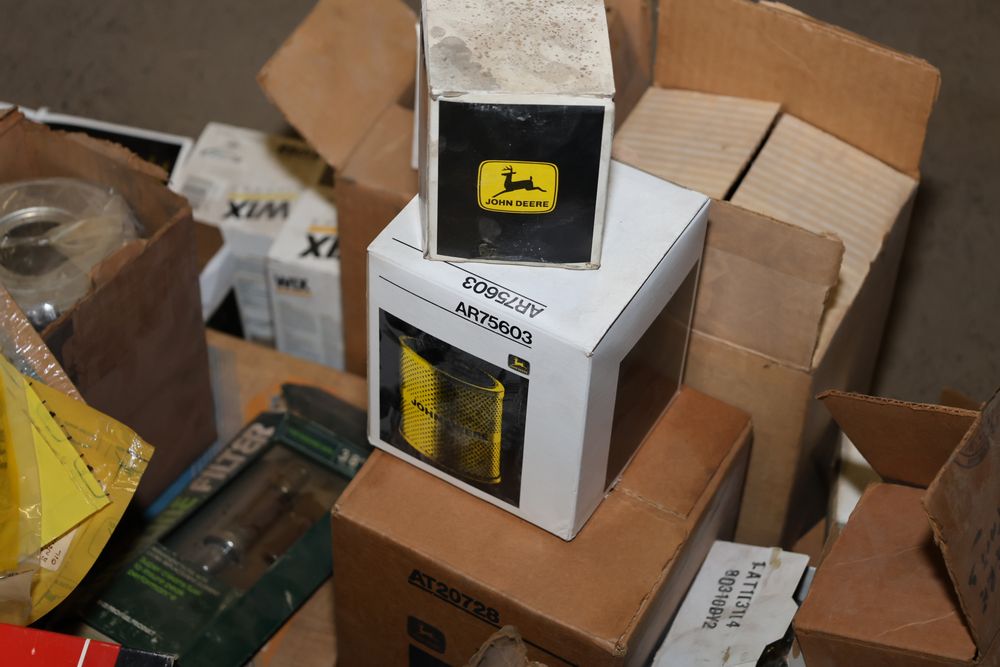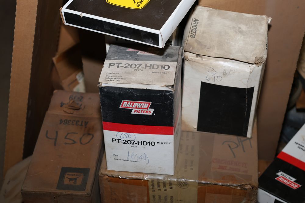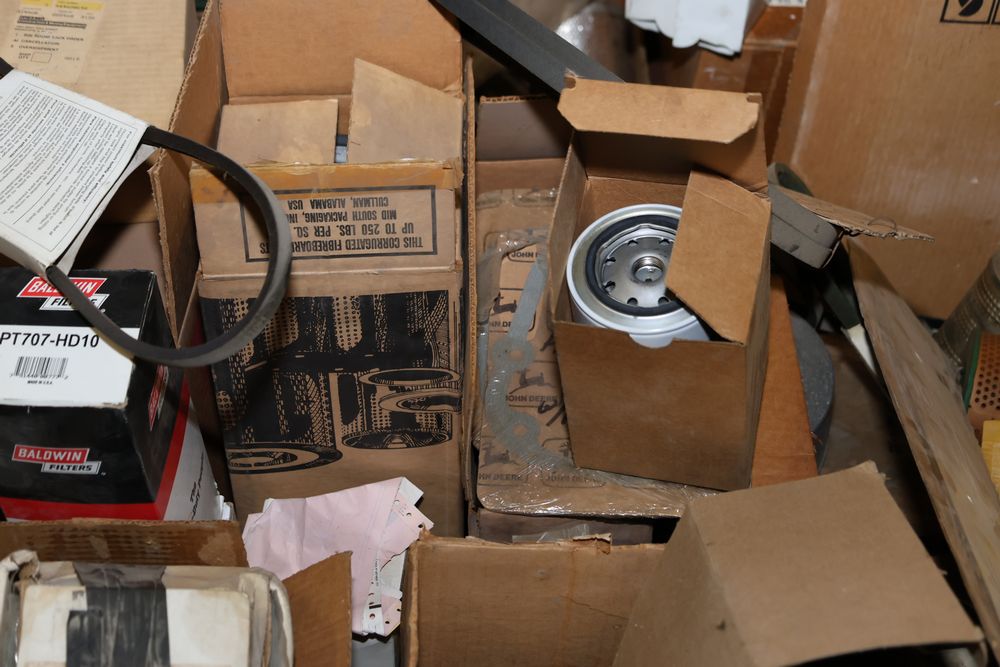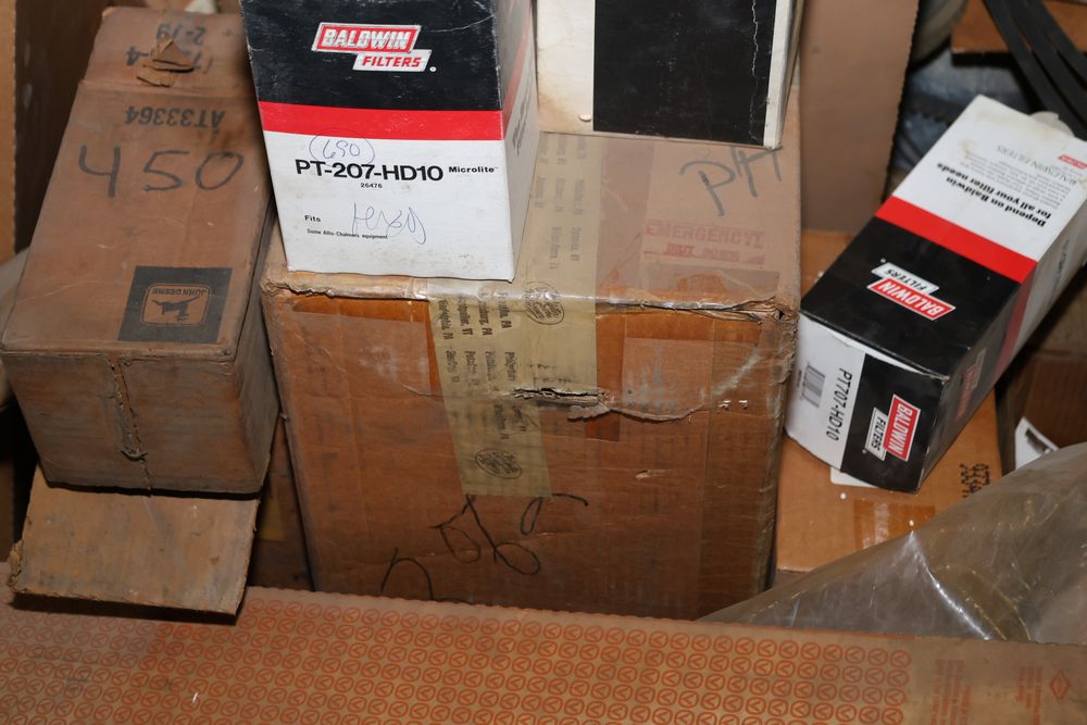 Automotive and equipment parts including filters, seals, bearings, hoses, and more. The assortment includes boxed and loose items from various manufacturers and brands. The inventory features gaskets, belts, and other replacement parts suitable for machinery and automotive use. Buyer must take all. Pickup only.