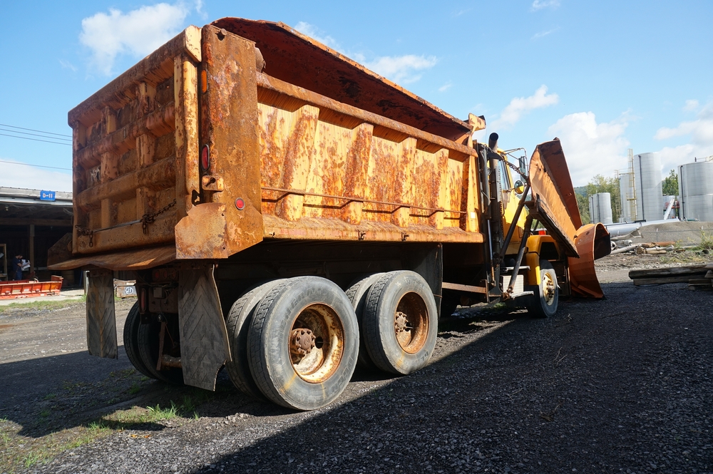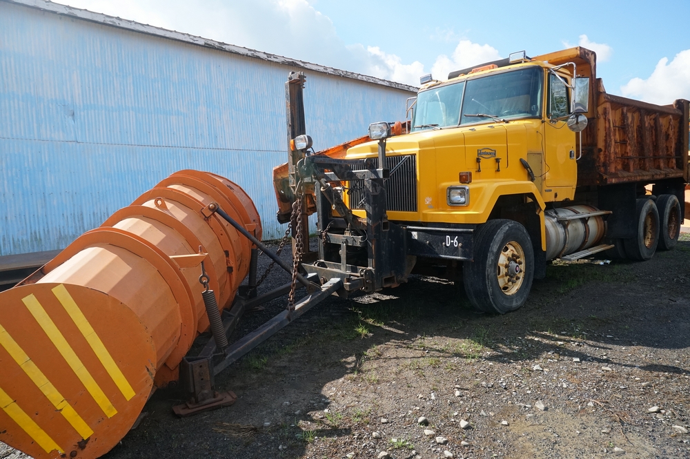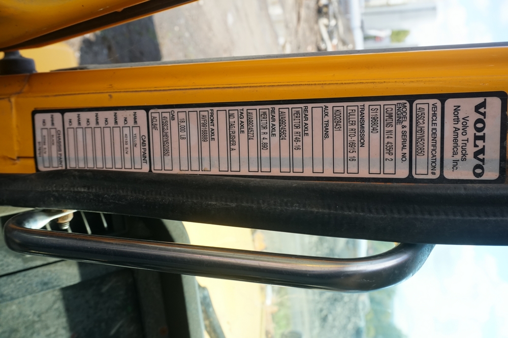 2000 Volvo Plow/Dump Body Truck; VIN: 4V5SC2JH6YN520850; Odometer Reads:184,054.5 Brakes: Air, Engine Model: N14, Cummins Diesel inline 6 cyl, Rust, Includes Front and Wing plow, plus extra plow. Seller States; Used as salt truck. Runs and Drives. Includes: keys, title