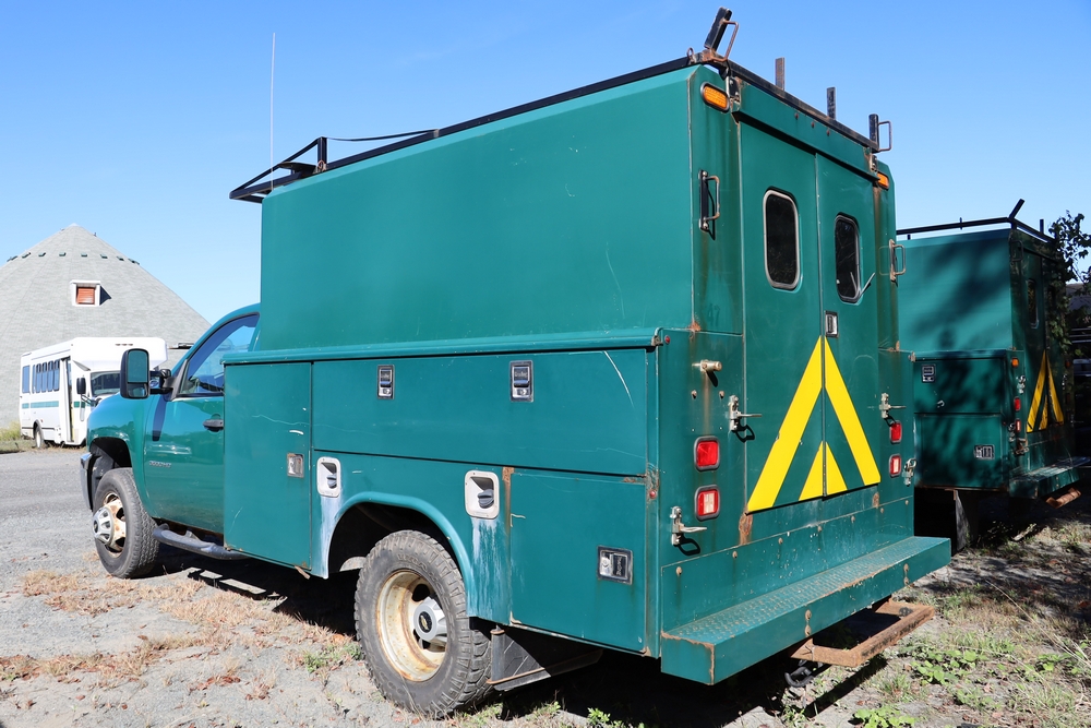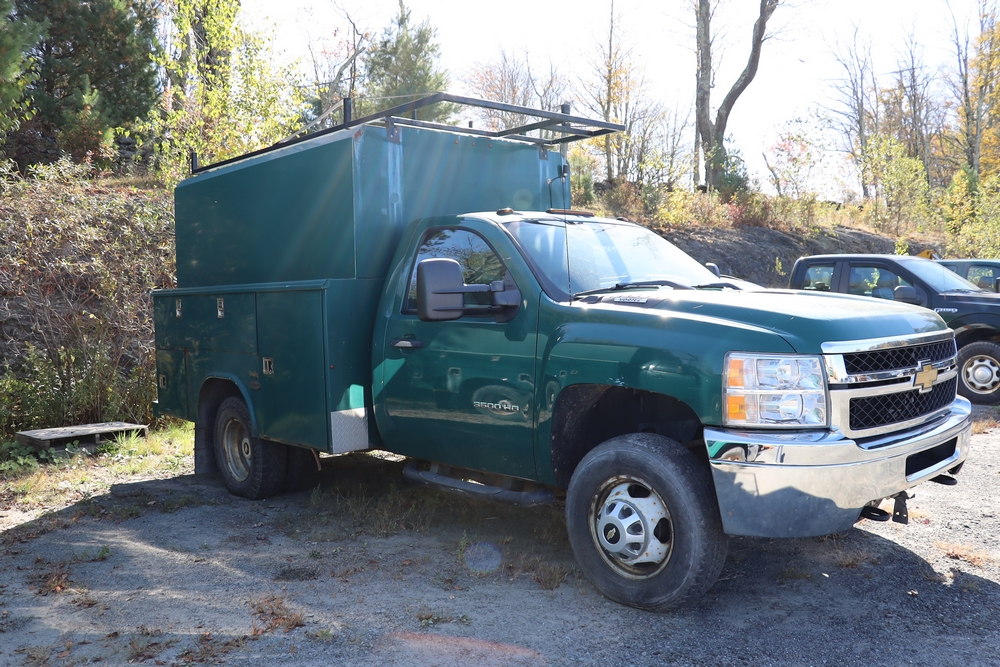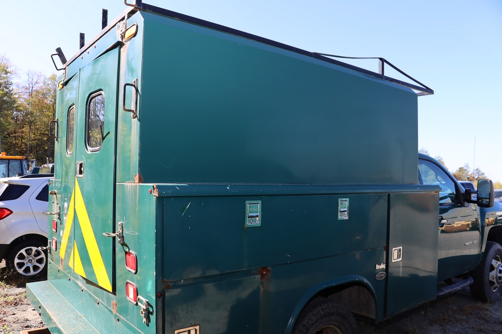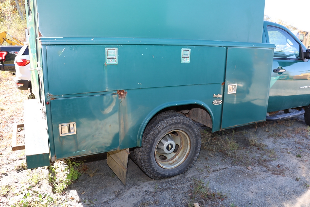 2012 Chevrolet Silverado K3500 6.0L Vortec Gas Engine, DRW, 6 Speed HD Automatic. 9’ Enclosed Utility body, 13,200 lbs. Rear Axle 3.73 Ratio Locking Diff. Tires LT235/80R17. 70,889 Miles. Starts and Moves, Poor Shape has rust issues. VIN: 1GB3CZCG9CF228859 Asset Tag 41174