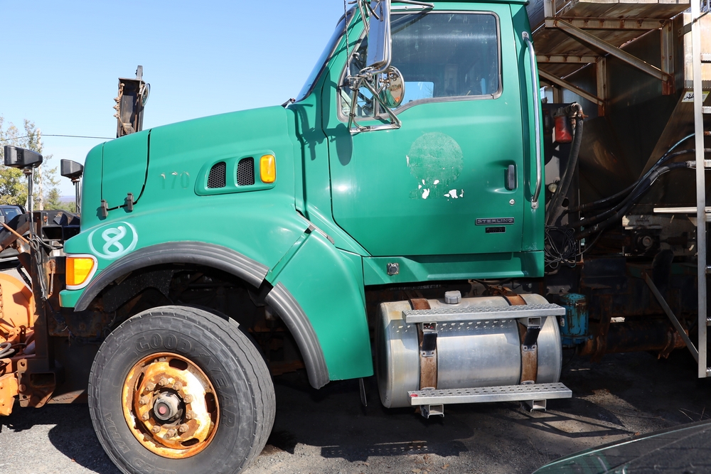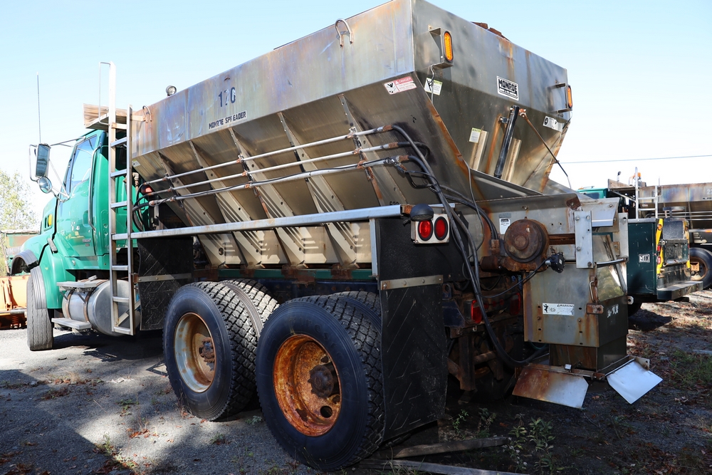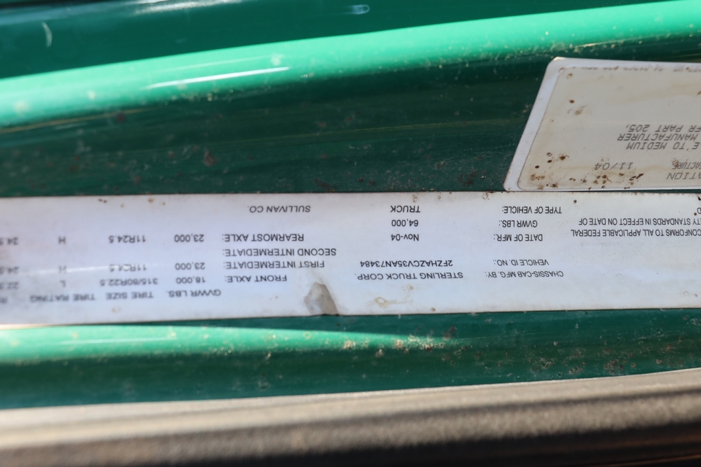 2005 Sterling Model LT9511 Engine: Mercedes-Benz MBE 4000 6 Cyl 12.8L Diesel. Transmission: Eaton Fuller Model RT016908LL, Body has sander installed with Plow and Wing. Comes with 13’ Steel Dump Body. 64,000lbs. Front tires 315/80R22.5, Rear tires 11R24.5 127,506 Miles. Starts, has rust issues. VIN: 2FZHAZCV35AN73484, Asset Tag 18504