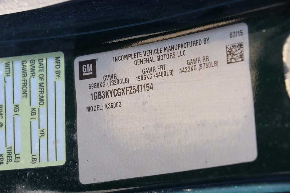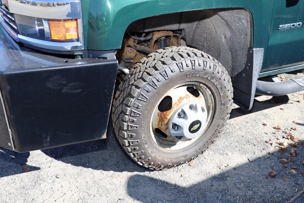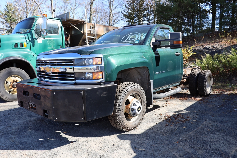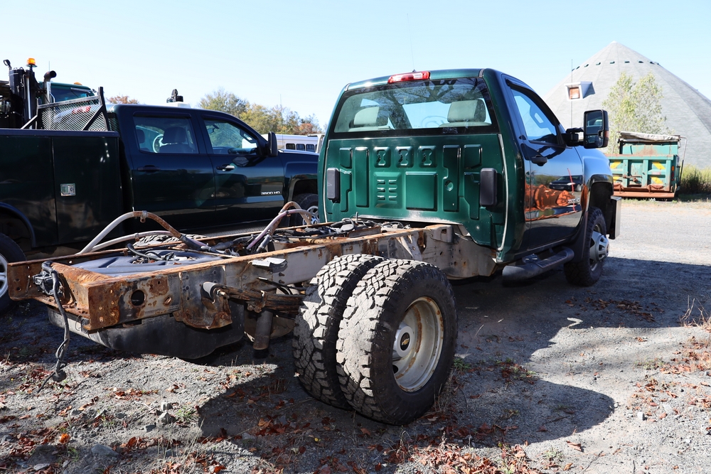2015 Chevrolet Silverado K3500 Regular Cab and chassis. Engine: 6.0L V8 Gas. Transmission: 6 speed Automatic, 4WD With duel rear wheels. 46,394 Miles. Tires LT235/80R17. Truck is in good shape. Starts and drives. VIN: 1GB3KYCGXFZ547154. Asset Tag 41276
