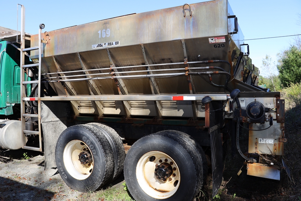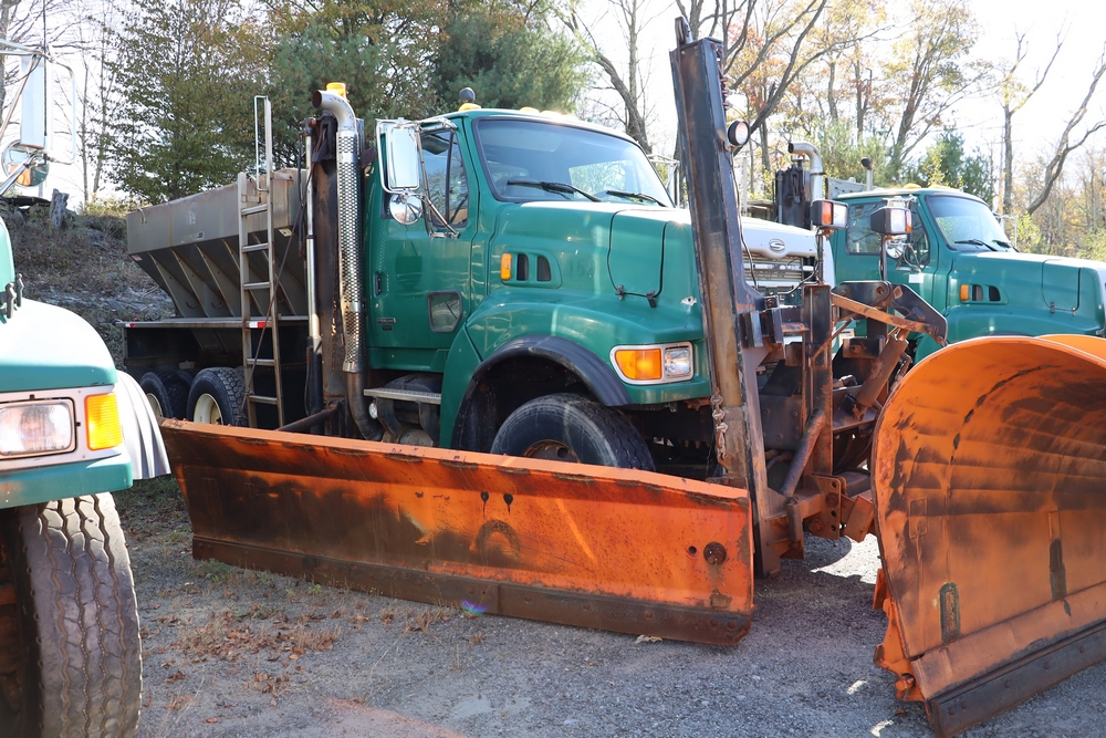 2005 Sterling Model LT9511 Engine: Mercedes-Benz MBE 4000 6 Cyl 12.8L Diesel. Transmission: Eaton Fuller Model RT016908LL, Body has sander installed with Plow and Wing. Comes with 13’ Steel Dump Body. 64,000lbs. Front tires 315/80R22.5, Rear tires 11R24.5 159,016 Miles. Starts and moves, has rust issues. VIN: 2FZHAZCV15AN73483, Asset Tag 18696