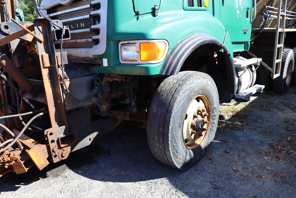 2005 Sterling Model LT9511 Engine: Mercedes-Benz model MBE 4000 6 Cyl 12.8L Diesel. Transmission: Eaton Fuller Model RT016908LL, Body has sander installed with Plow and Wing. Comes with 13’ Steel Dump Body. 64,000lbs. Front tires 315/80R22.5, Rear tires 11R24.5 134,304 Miles. Starts and moves, has rust issues. VIN: 2FZHAZCVX5AN73482. Asset Tag 18643