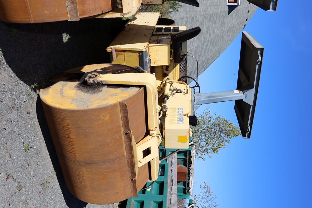 1977 Bomag Static steel roller, 24,000lbs. Model BW11AS. Engine: Cummins 4BT 3.9L Eng S/N 45563793. Hours 2,323. Operates as it should. VIN: D089C64304. Asset Tag 18110
