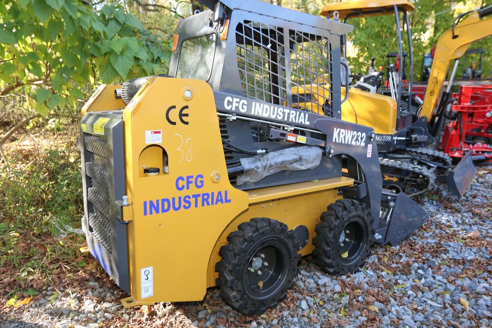 New 2025 CFG Industrial mini Skid Steer Loader model KRW232, RATO 30HP 22KW gasoline engine with EPA, 2 cylinders, bucket, open cab. less then 1 hour of use.