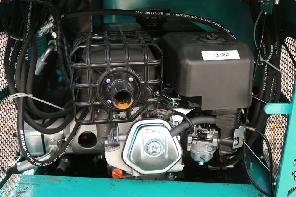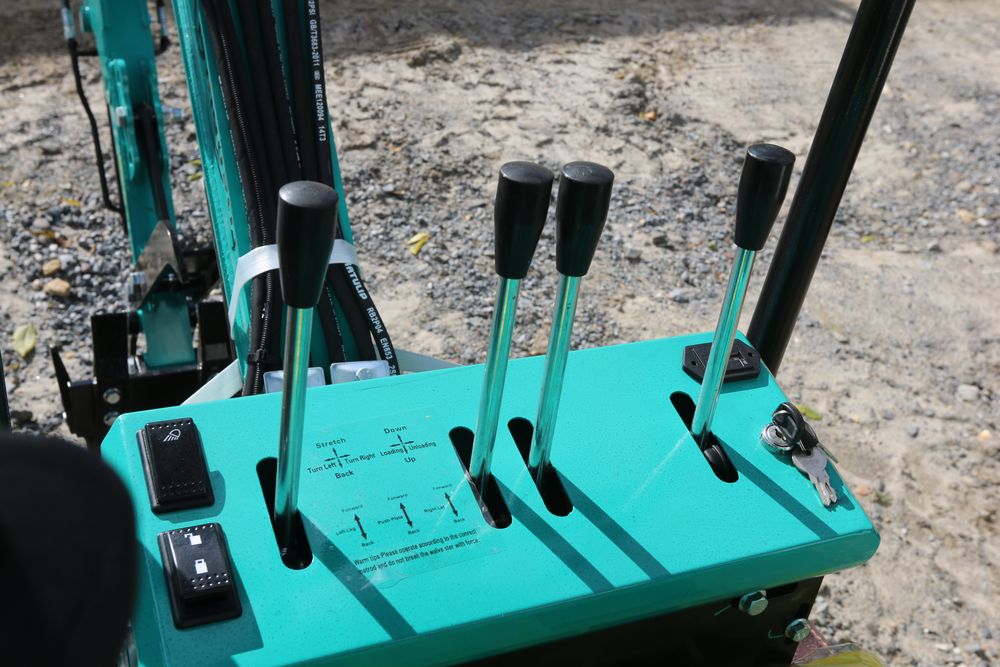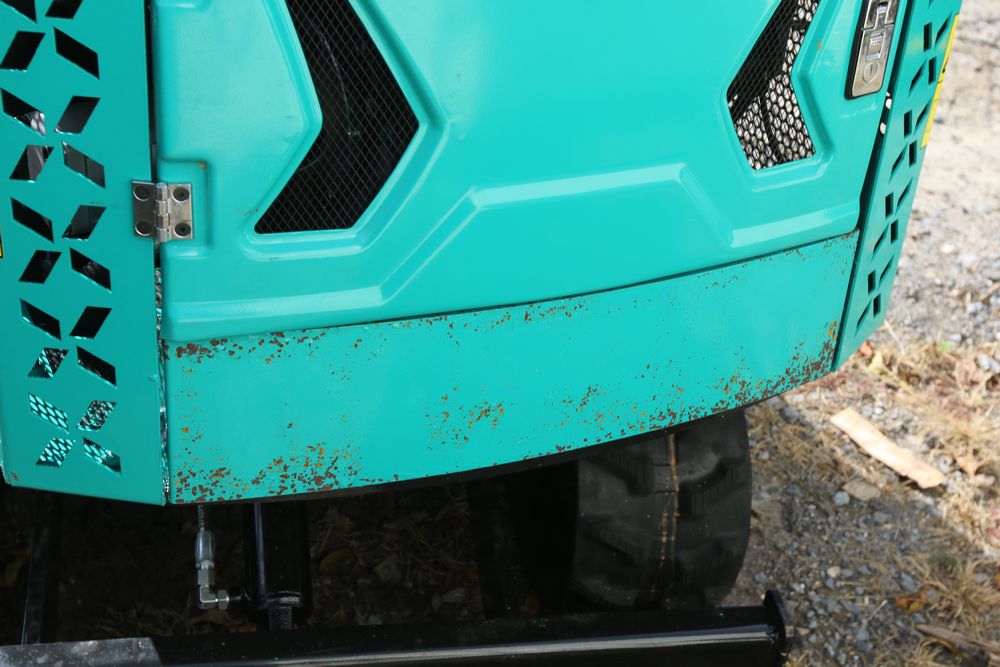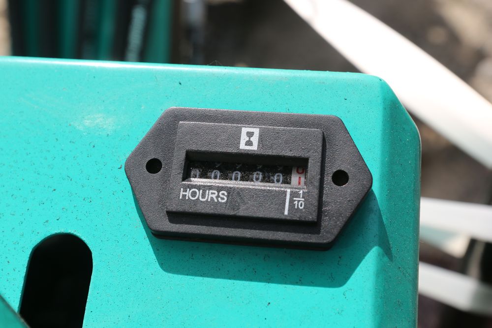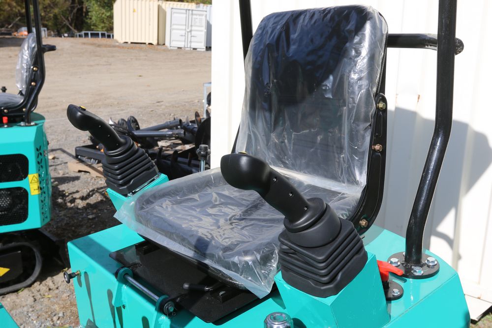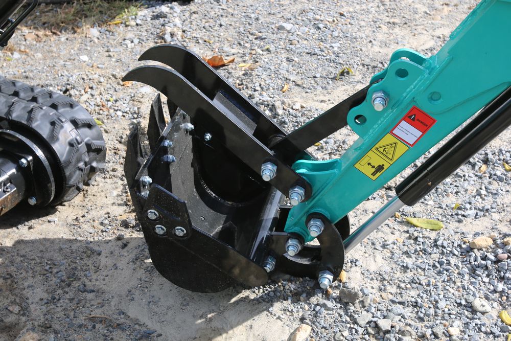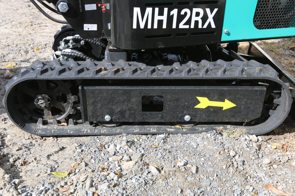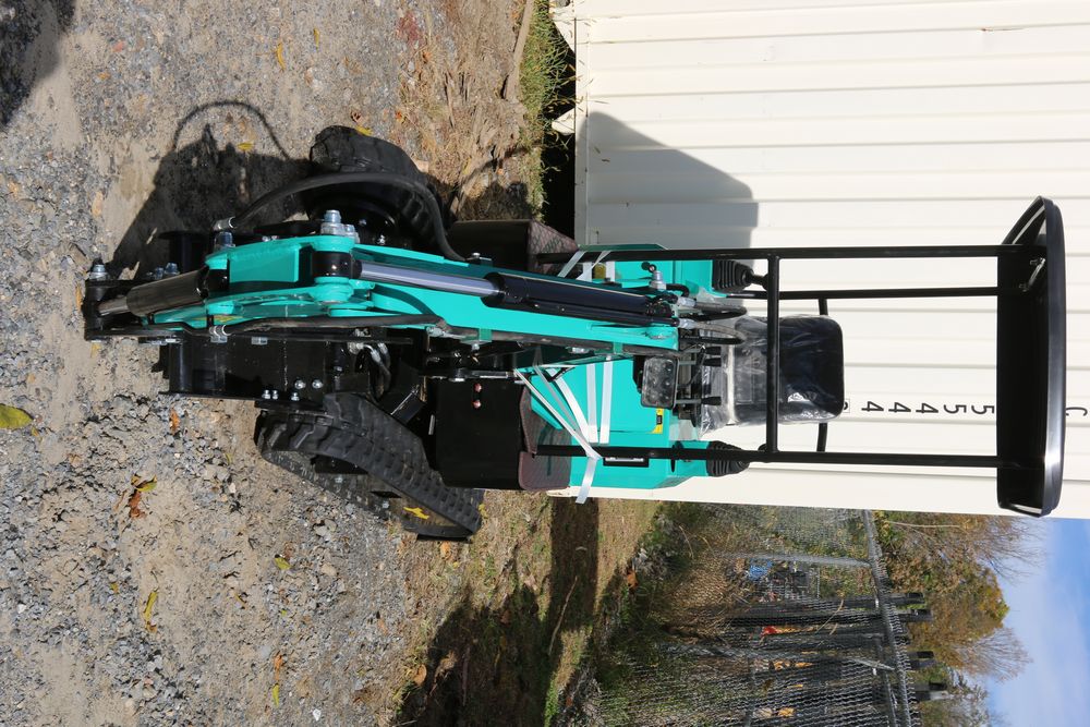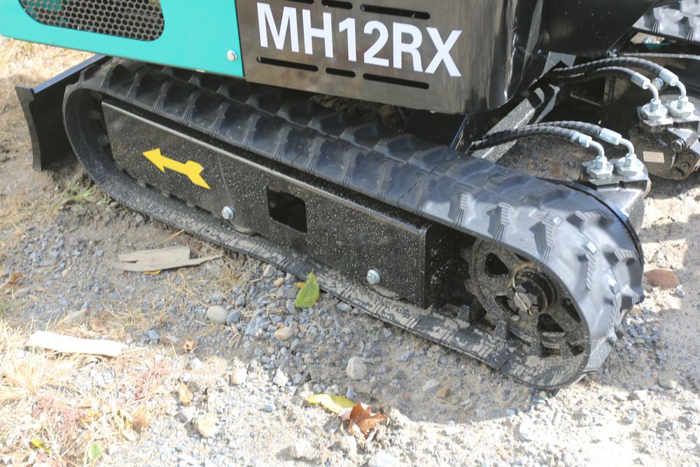 New 2025 CFG Industrial MH12RX mini excavator with bucket, thumb, gas engine. Hours meter reads less than one hour.