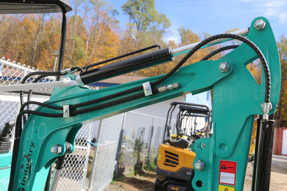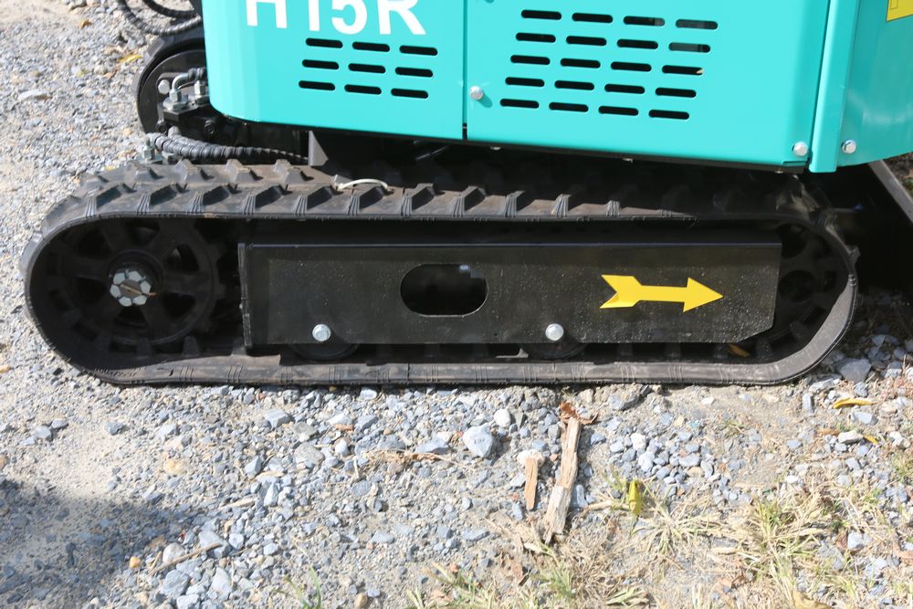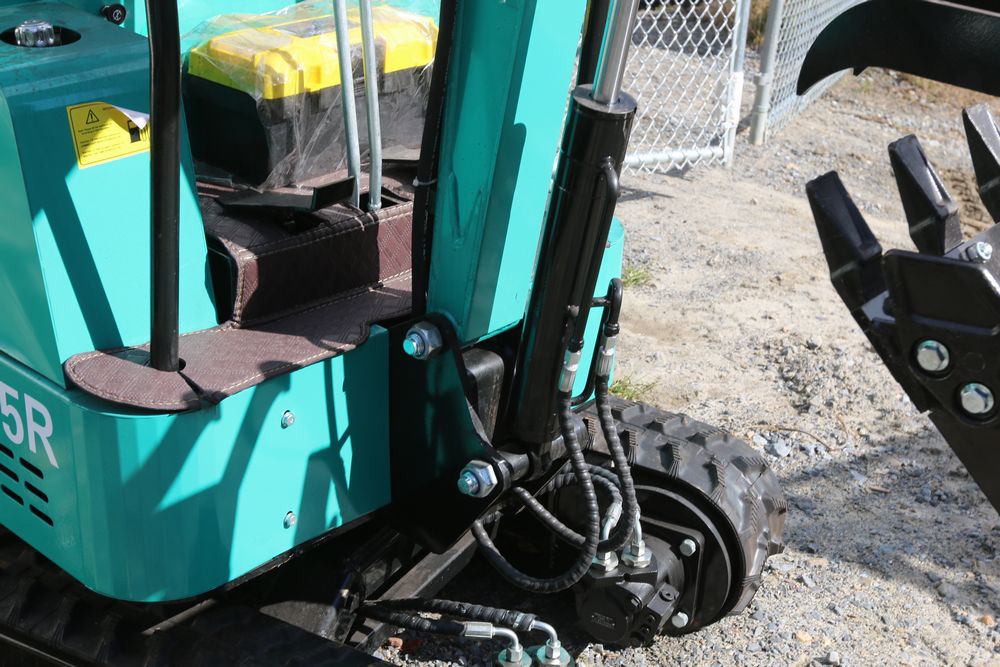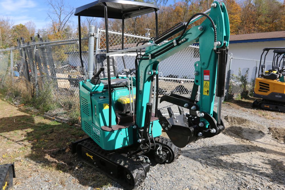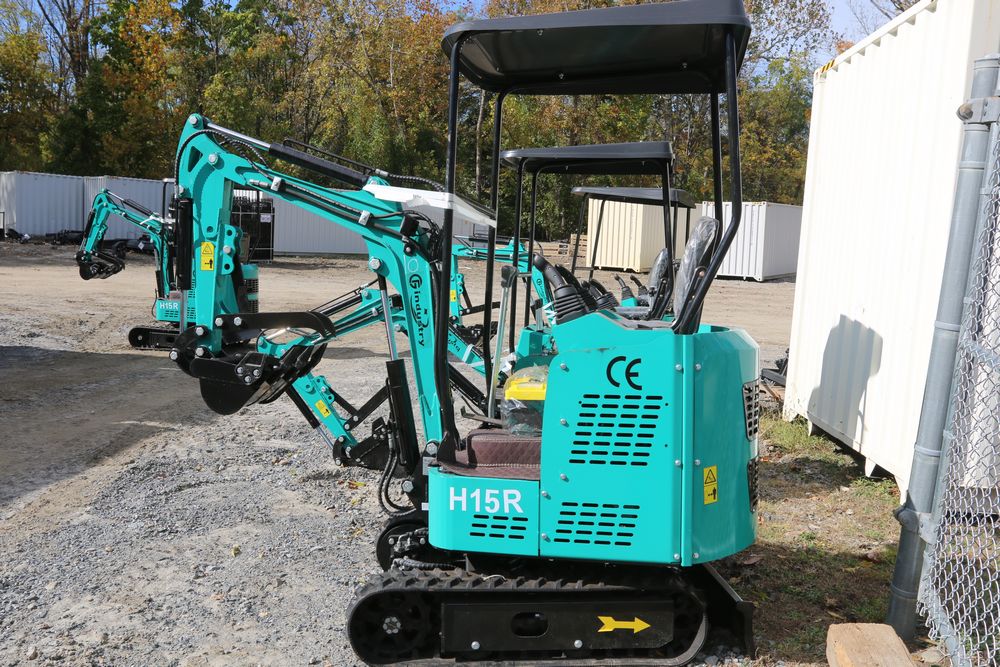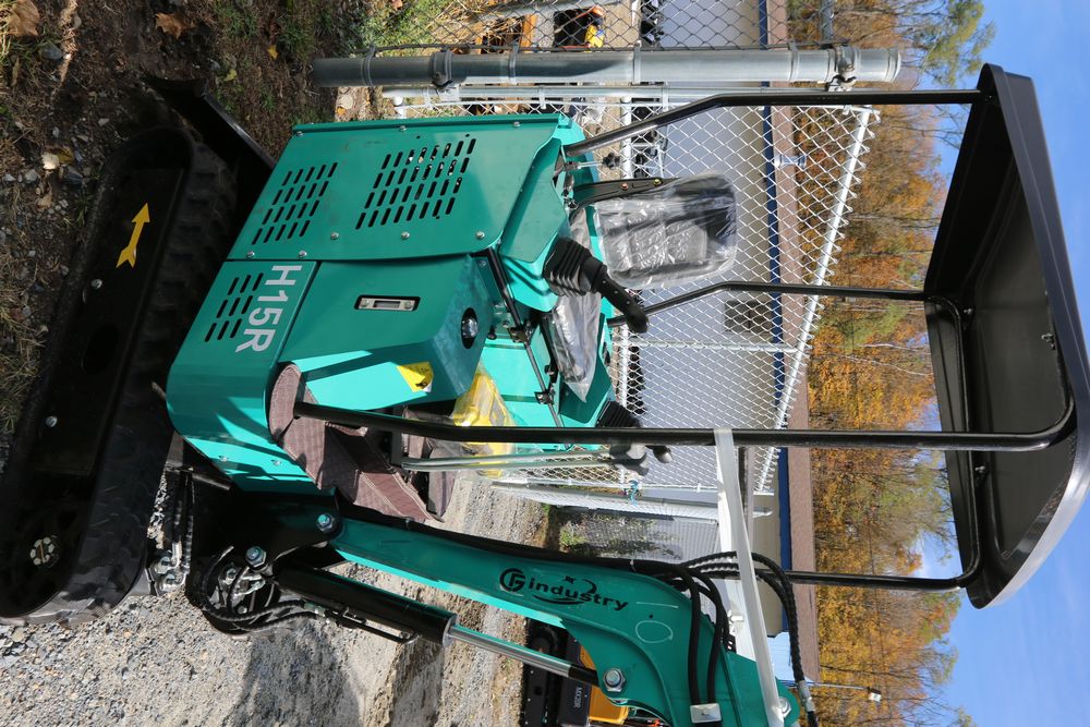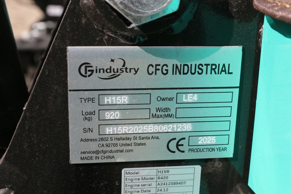 New 2025 CFG industrial gas powered mini Excavator model H15R with 420cc gasoline engine, 38.5" wide base, 6" wide tracks, canopy, hydraulic boom & bucket controls, pilot system, thumb, dozer blade. Hours reading less than 1 hour.