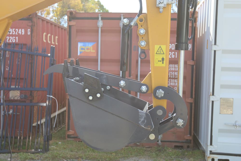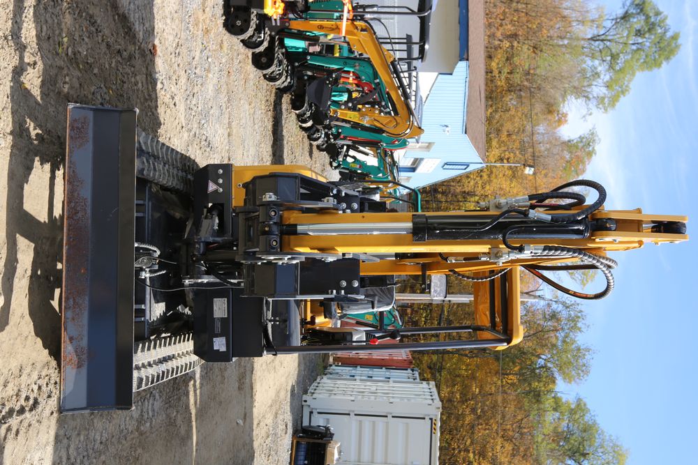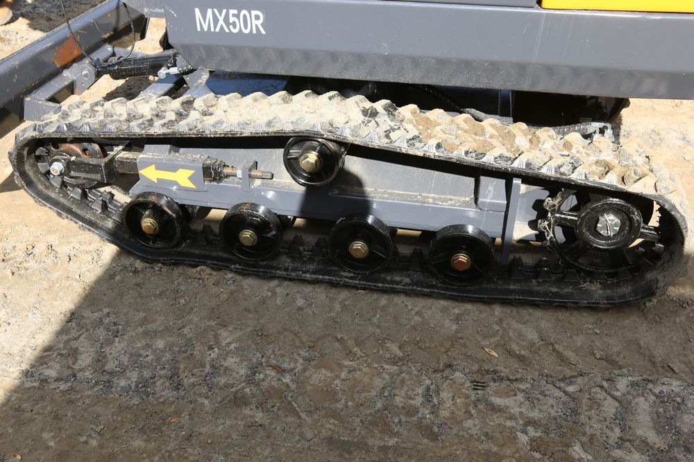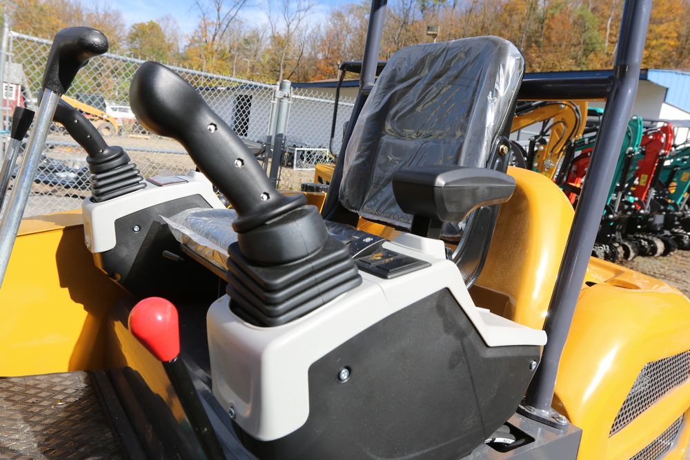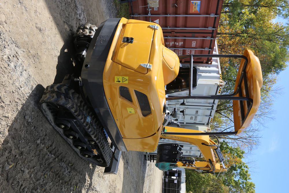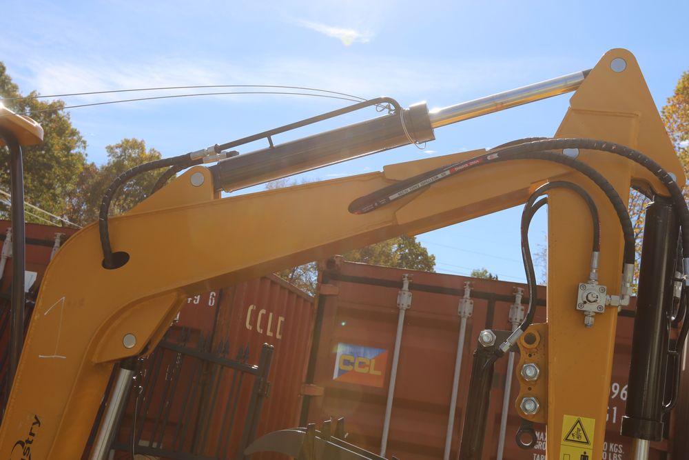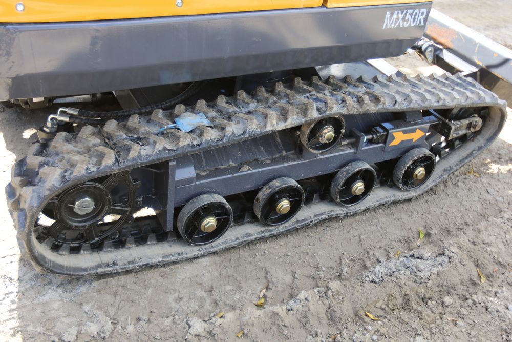 New 2025 CFG Industrial MX50R mini excavator with a 1700 kg load capacity. Features include a R825 engine model, a hydraulic thumb, and off-road undercarriage expansion. Includes a dozer blade, tracked base, and ergonomic operator seat. Less than 1 hour of use.
