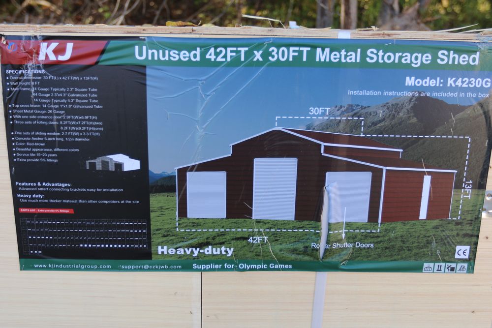New 2025 Metal Storage Shed 42FT x 30FT Metal Storage Shed model K4230G, in wooden crate.