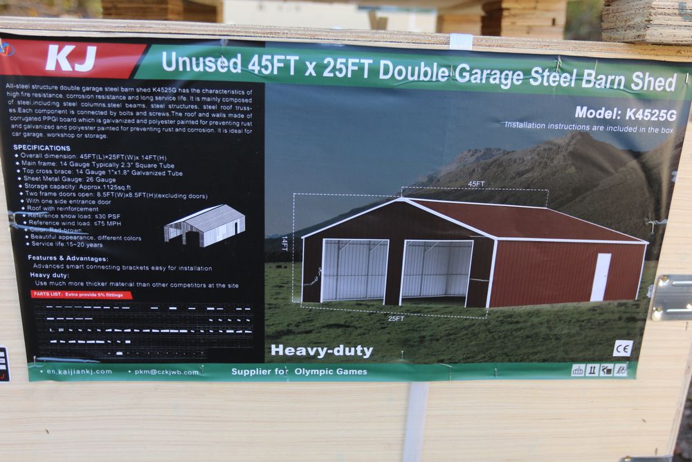 Items include new 2025 CFG Industrial auger, skid steer hydraulic hammer, mini skid steer loader, skid steer back hoe, gas powered mini excavator; new 2025 AGT portable sawmill, ATK-B1000 two-post car lift; skid steer seeder, compact wheel loader, rotary tiller, mini skid steer cement mixer bucket; 2025 Mower King forklift forks; livestock metal shed; 20' biparting iron gate; double garage steel barn; new 2025 Wolverine; manure fork grapple, 72" skid steer six-way dozer blade attachment, skid steer pallet attachment, 6' mini skid steer auger drive bit, track duty bucket; concrete cutter; Landhonor rigging, impact wrench, heavy duty plate compactor, skid steer concrete breaker; Husky tool locker & more. Items are located in Pleasant Valley, NY. Preview is highly recommended!