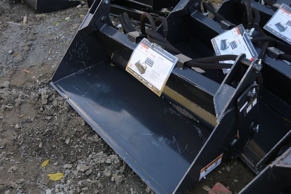 New 2025 Wolverine mini skid steer combination bucket attachment, model MCB-11-48W, 48"W.