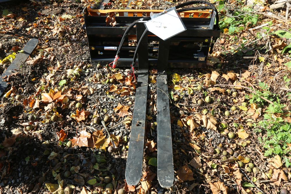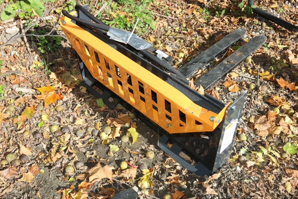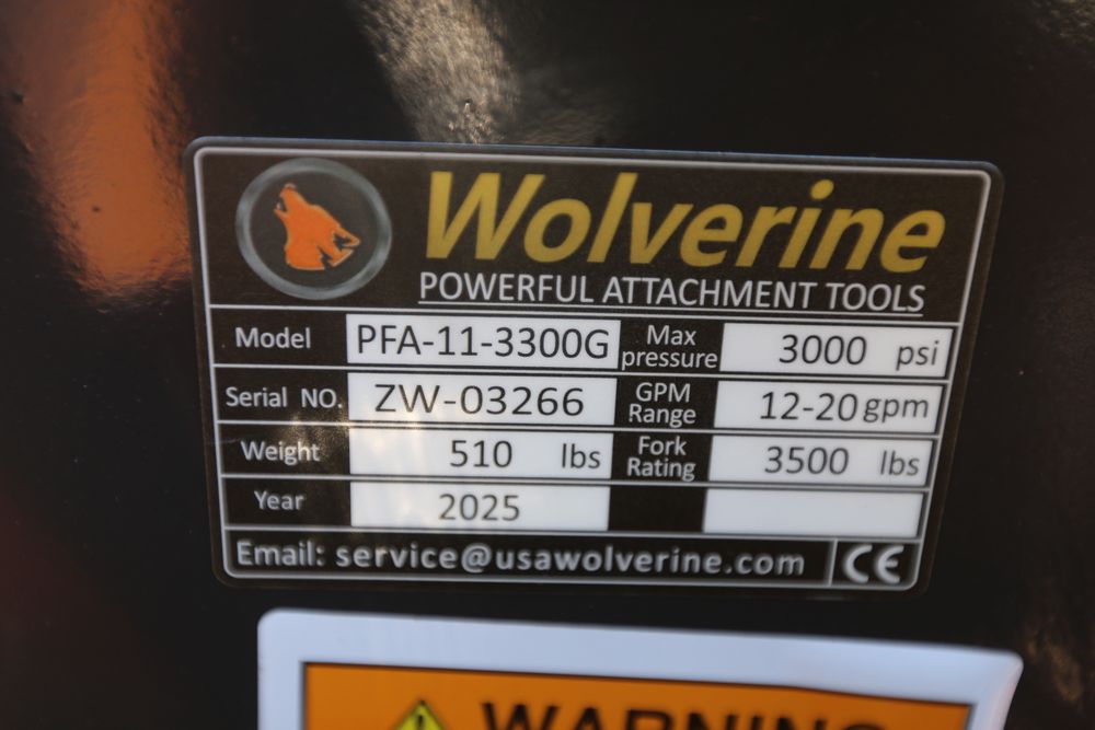 New 2025 Wolverine skid steer pallet fork attachment hydraulic adjustment, model PFA-11-3300G, 48" fork adjustment.