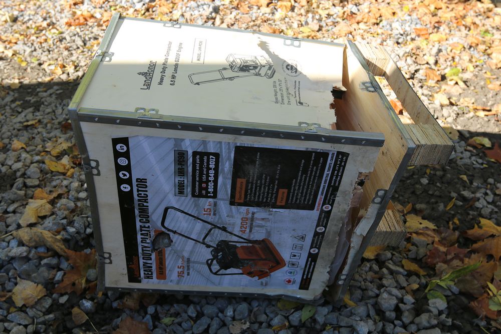 New 2025 LandHonor heavy duty plate compactor model LHR-PC90H, 6.5HP Loncin G200F engine. In original crate.