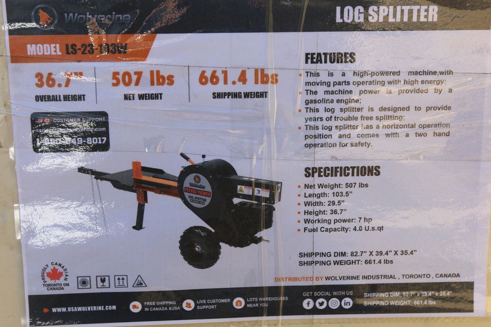 New 2025 Landhonor Log Splitter, 7HP four stroke 3600 rpm gasoline engine, 29.5"Wx36.7"Tx103.5"D, model: LS-23-103W.