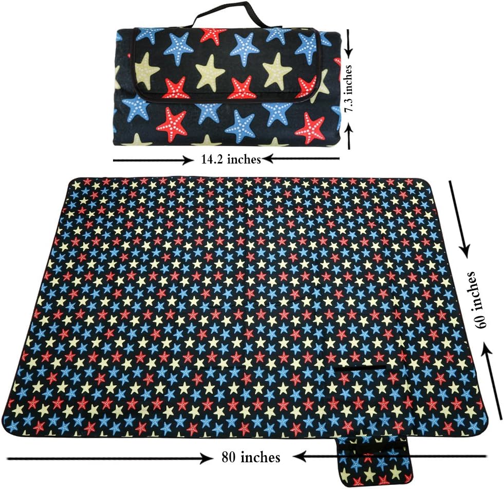 PURE PROTECTOR Picnic Blanket, Waterproof, Durable Handy Beach Picnic Lawn Mat with Strap for Camping Hiking Traveling Indoor & Outdoor Activities (Stars)