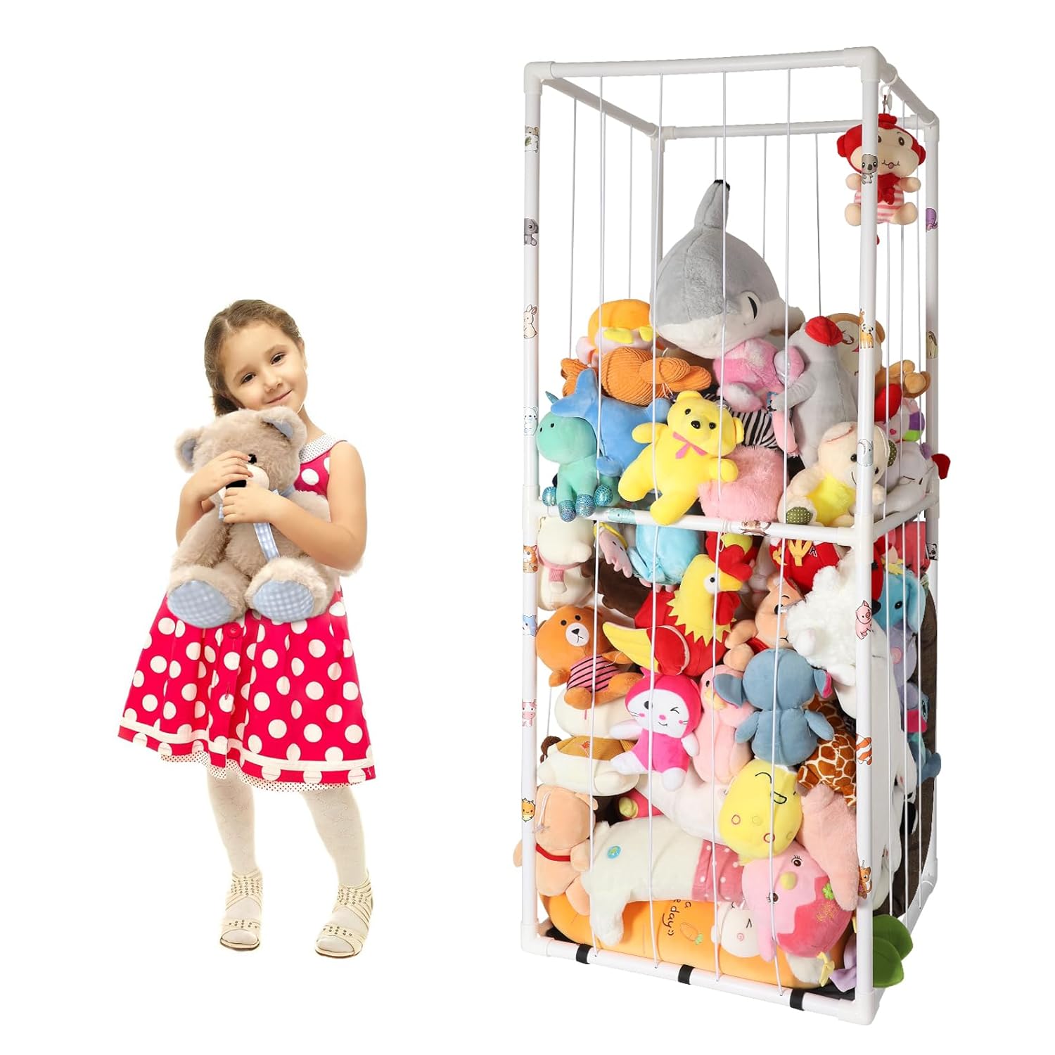 VZIUDYN Large Stuffed Animal Zoo Storage Stuffed Animal Holder PVC Plush Storage Organizer Shelf with Elastic Band for Birthday Gift for Toddler Baby Kid, Play Room Decor Corner, VN-01
