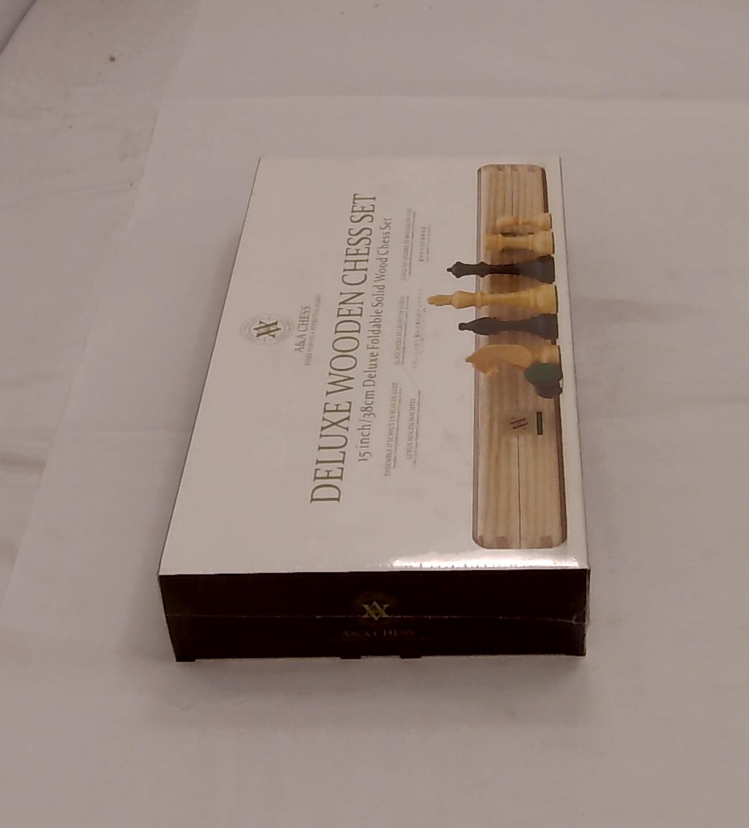 A&A Premium Natural Mahogany Folding Chess Set, w/ 15" Board & 3" King Height Staunton Chess Pieces, Includes 2 Extra Queens and a Storage Bag
