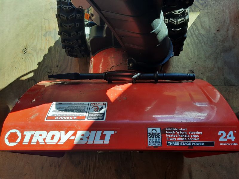 Troy-Bilt 24" Snowblower. Troy-Bilt Vortez 2490 snowblower w/ heated handle grips, elec start, 24" opening. Loc in shed.