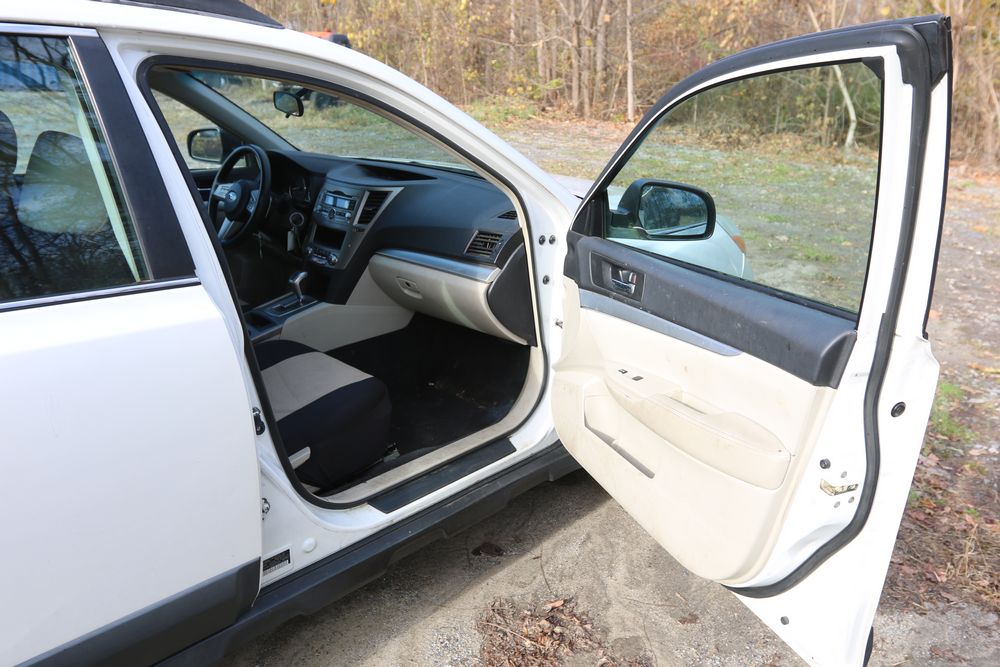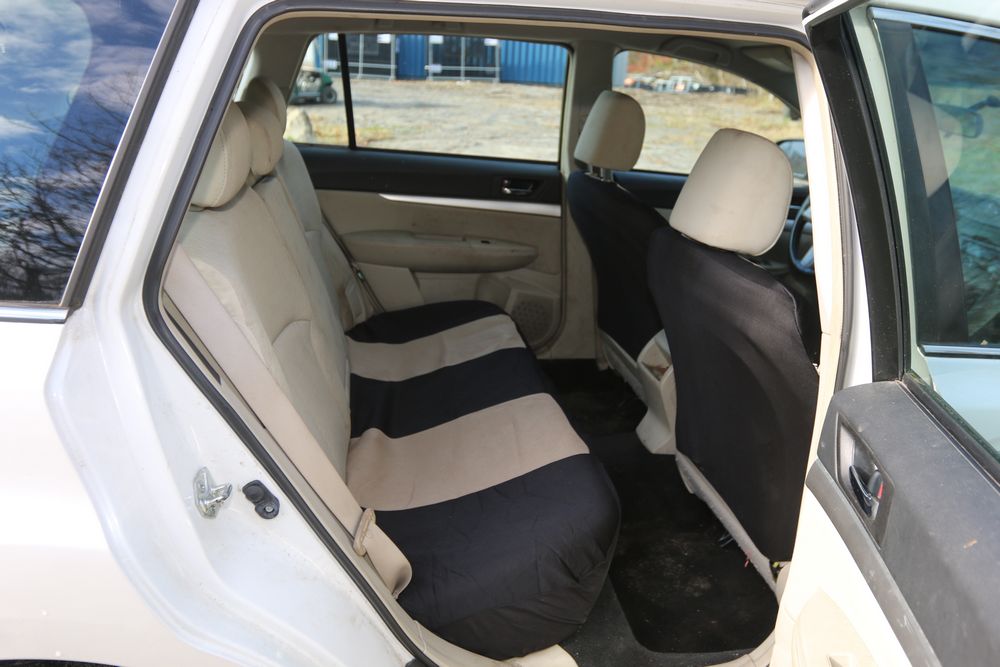 2011 Subaru Outback with a 2.5L H4 DOHC 16V engine, odometer reading: 160,146, VIN# 4S4BRBAC3B3402949. Equipped with an automatic transmission, all-wheel drive, roof rails, and a spacious cloth interior featuring power windows, power locks, and an AM/FM/CD audio system. Seller reports: has an exhaust leak that will need welding. Runs and drives. Title and keys available.