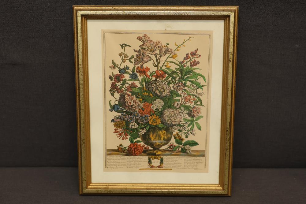 Framed Artworks Including Botanical Prints and Floral Compositions. Assortment of framed prints and paintings showcasing various botanical and floral designs. Includes a peach botanical, colorful floral pieces, and limited edition works. Pickup only.