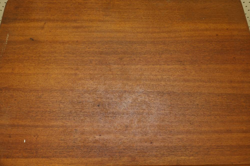 Wood Writing Desk with Cabriole Legs and Adjustable Swivel Chair. The desk measures 34x24x30 inches and features a rectangular top and elegantly curved cabriole legs. The accompanying chair has a slatted wood backrest, a padded brown circular seat, and an adjustable swivel design on a four-point wood base with casters. Pickup only.