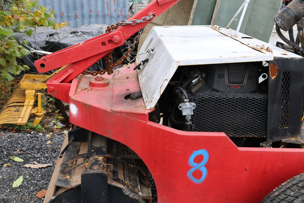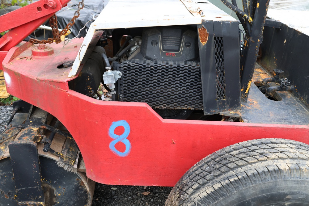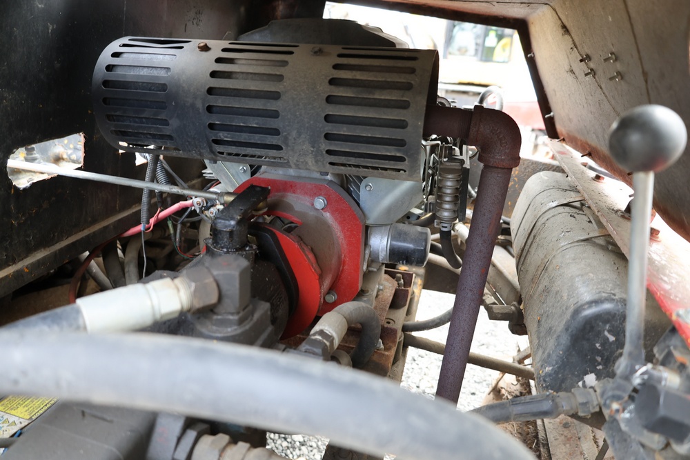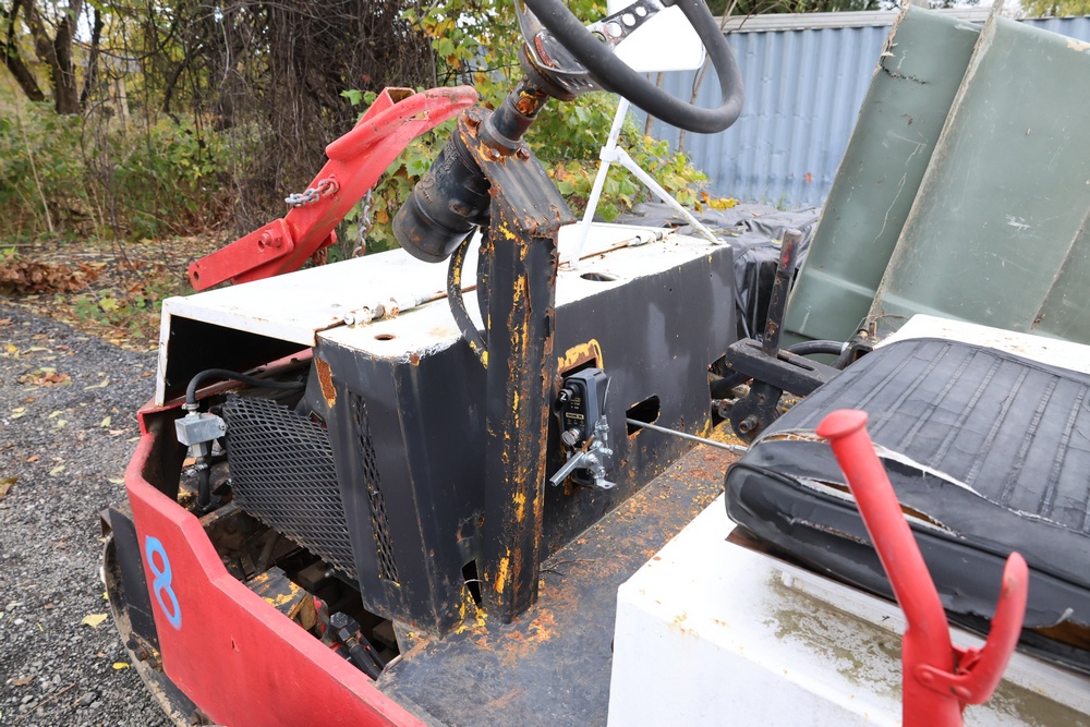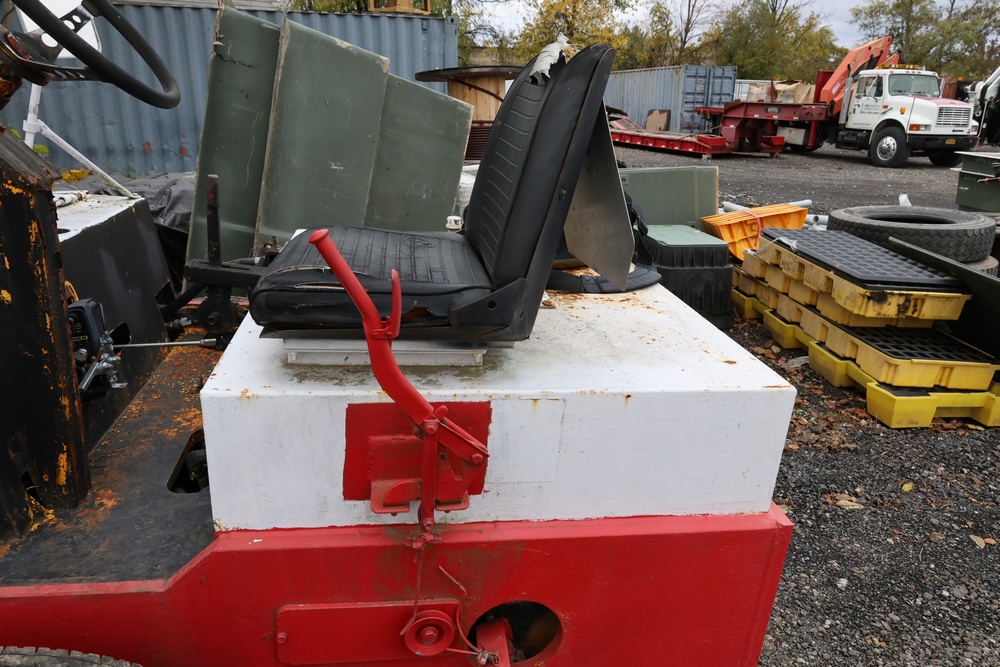 General Engines Co. Roller tow behind Ride-On Steel Drum Roller with Hydraulic Drive, Front and Rear Drums, and Rear Pneumatic Transport Tires. Powered by Predator 670cc Gasoline Engine. Equipped with Hydraulic Control Levers, Adjustable Seat, and Steering Wheel. Manufactured by General Engines Co., Thorofare, New Jersey. Runs and operates as intended.