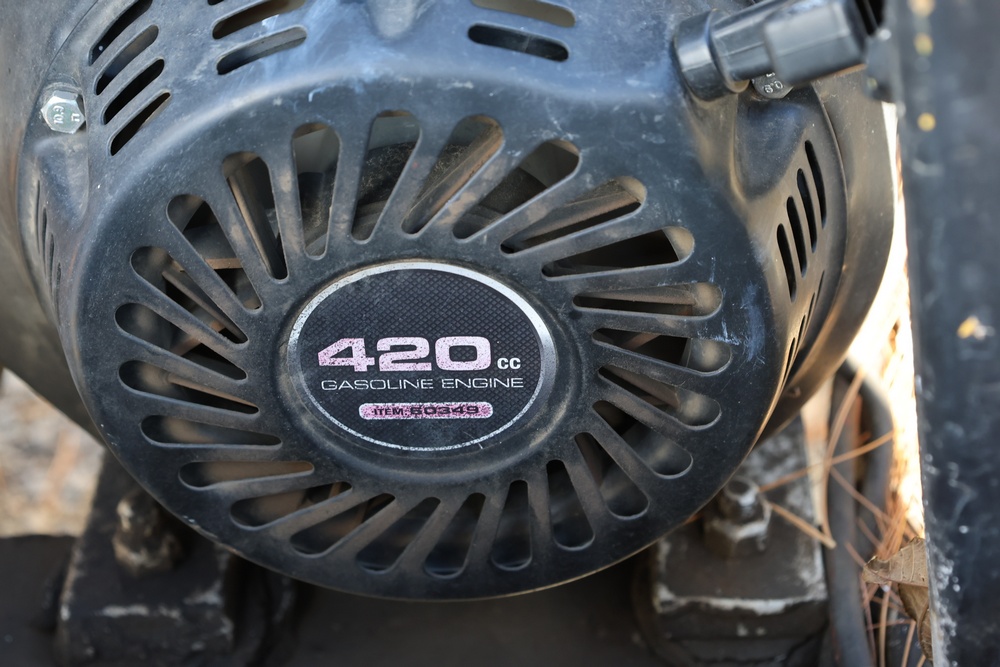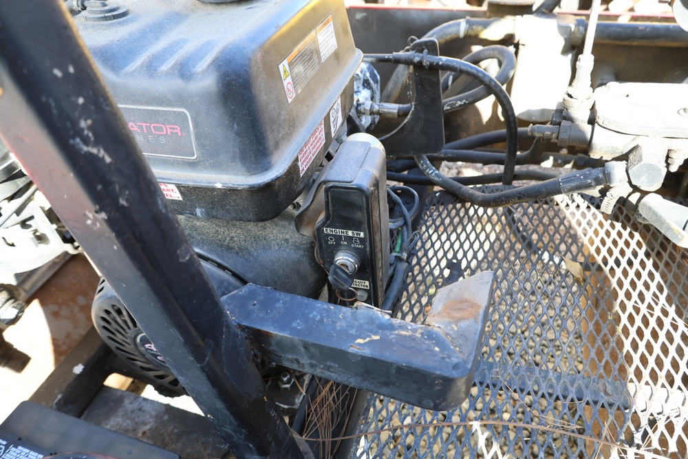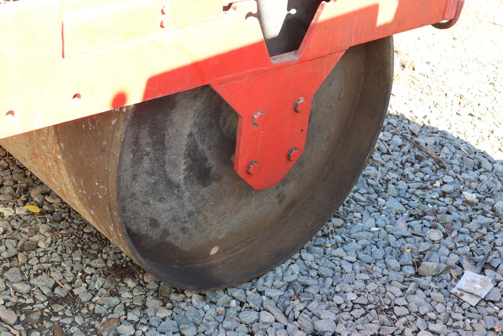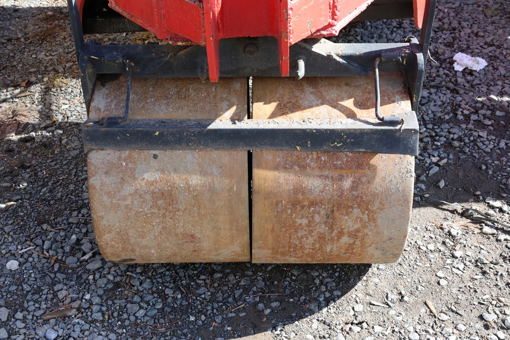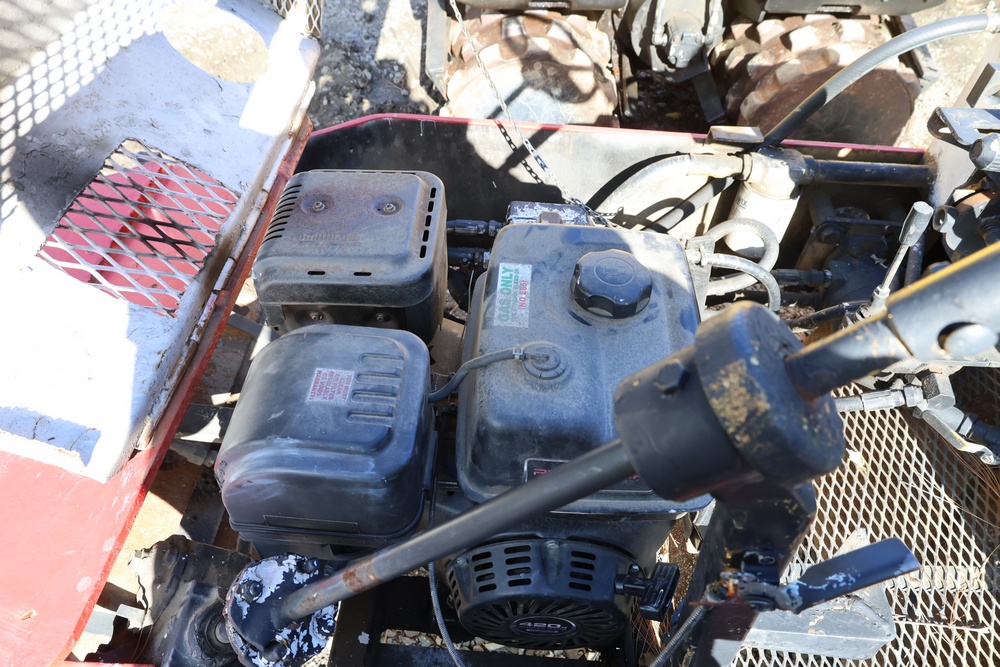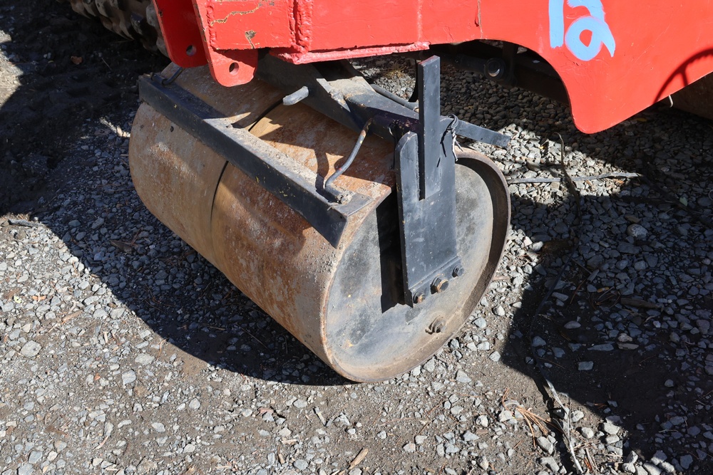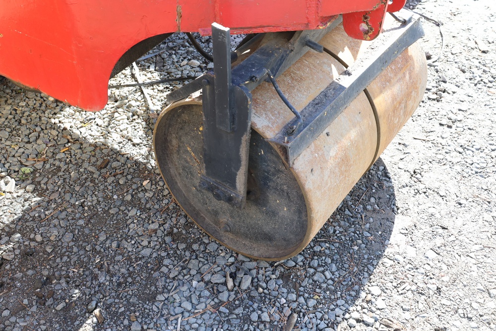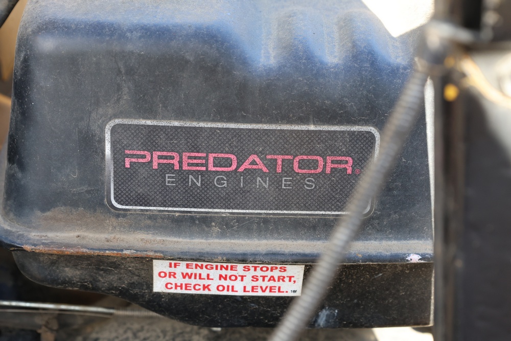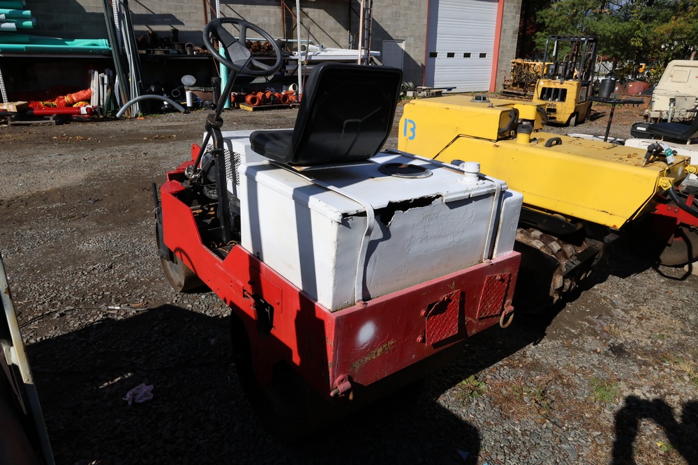 Ride-On Double Drum Roller, Serial #Unavailable. Hour Meter Reading: Not Equipped. Roller with Steel Smooth Drums, Predator 420cc Gasoline Engine, and Manual Controls. Red and White Painted Steel Frame with Open Operator Platform and Steering Wheel. Runs and operates as intended.
