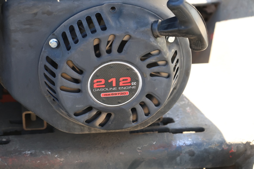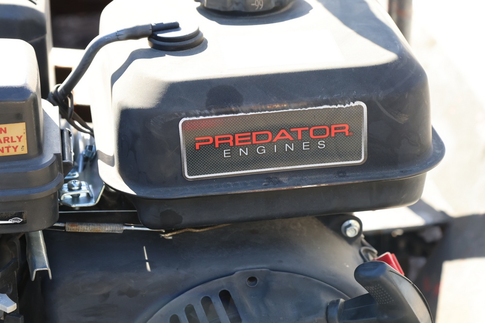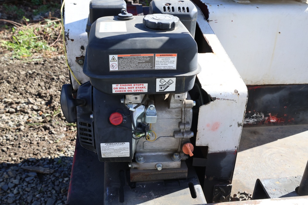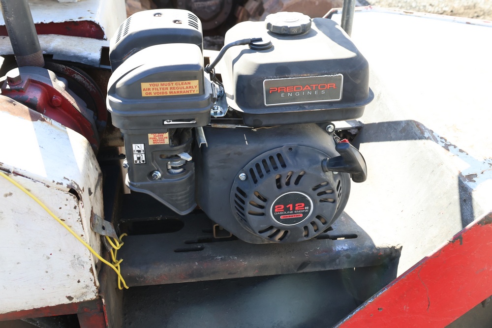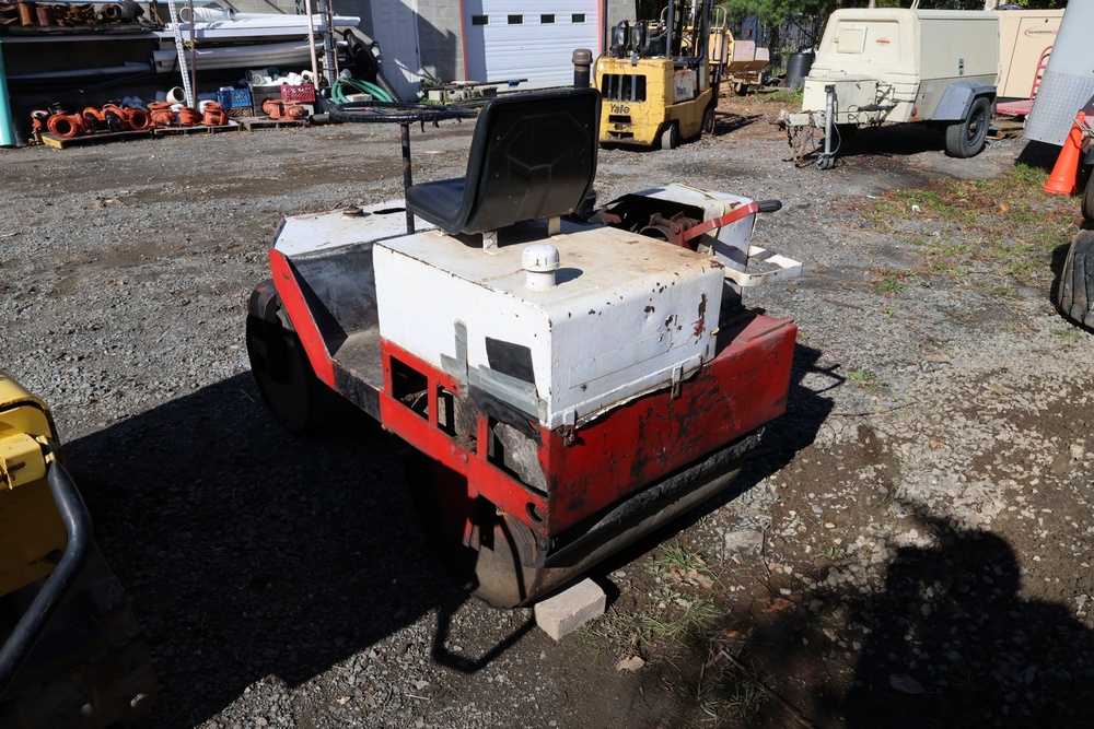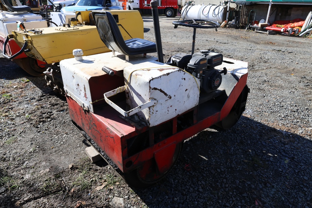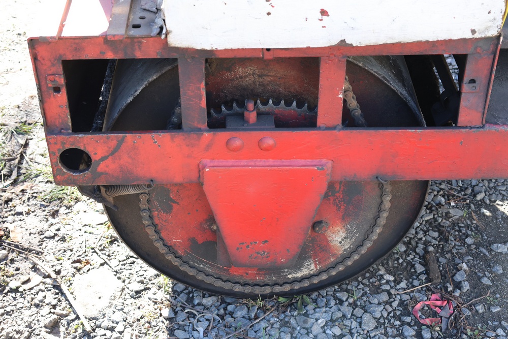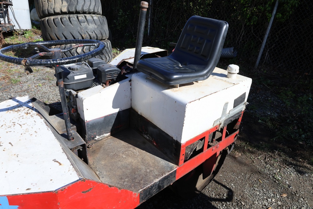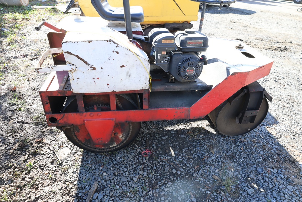 Ride-On Double Drum Roller, Serial #Unavailable. Hour Meter Reading: Not Equipped. Chain-Drive Compaction Roller powered by Predator 212cc Gasoline Engine. Open Operator Platform with Steering Wheel and Seat. Steel Smooth Drums, Red and White Painted Frame, Chain and Sprocket Drum Drive. Runs and operates as intended.