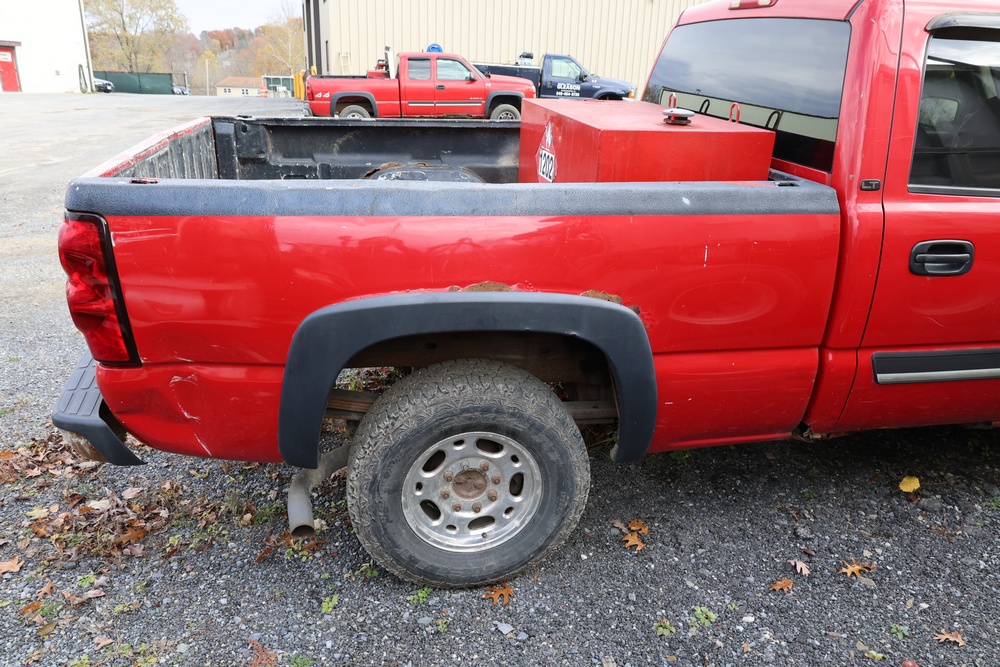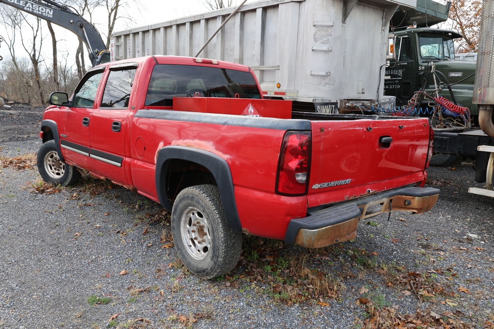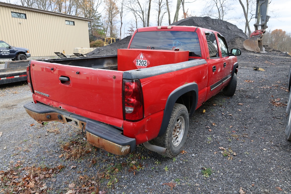 Items include 2006 Chevrolet Silverado 1500HD crew cab pickup truck; 2018 Appalachian 20' tandem axle equipment trailer; large steel roll-off dumpster container; dump truck dump bed gate; Reading Truck Body, Inc. truck utility body; Selta model 484000 100 gallon auxiliary fuel tank.; Chicago Electric chain saw sharpeners; computer monitors; heavy equipment new & unused filters & related components; pallet of custom plywood box chairs & more. Items are located in Poughkeepsie, NY.