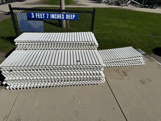 Items include pool lounge chairs and pool grating. Located in Yorktown Heights, NY.