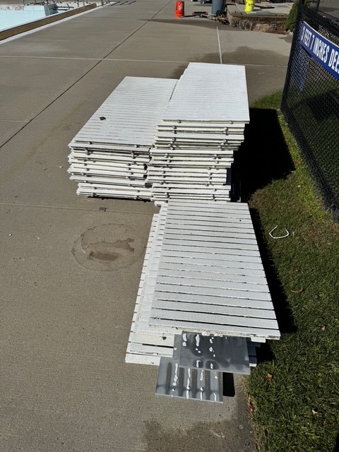 Items include pool lounge chairs and pool grating. Located in Yorktown Heights, NY.