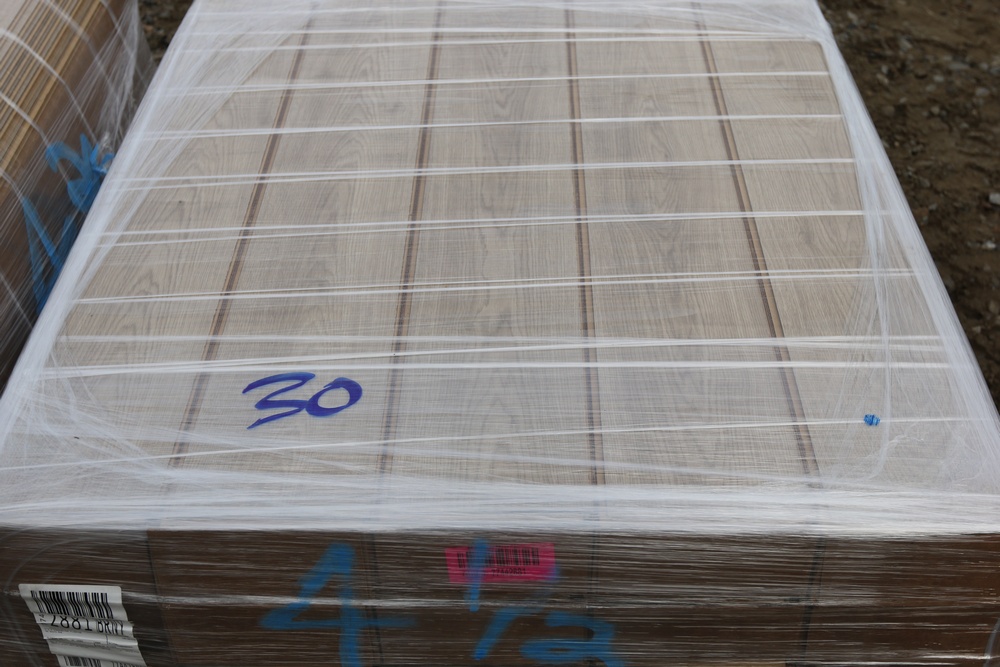 Lot is for 30 cartons of new laminate flooring. 29.45 square feet per carton. 883.50 total square feet. Manufacturer is Mohawk. Product is Revwood Select Arden Cliffs Aged Burlap Oak. This product is Waterproof. Uni-Clic floating locking system. 2nd quality indicating up to 10% of product may have minor imperfections such as markings, off-shade, blister/missing spot of wood grain, sample board.