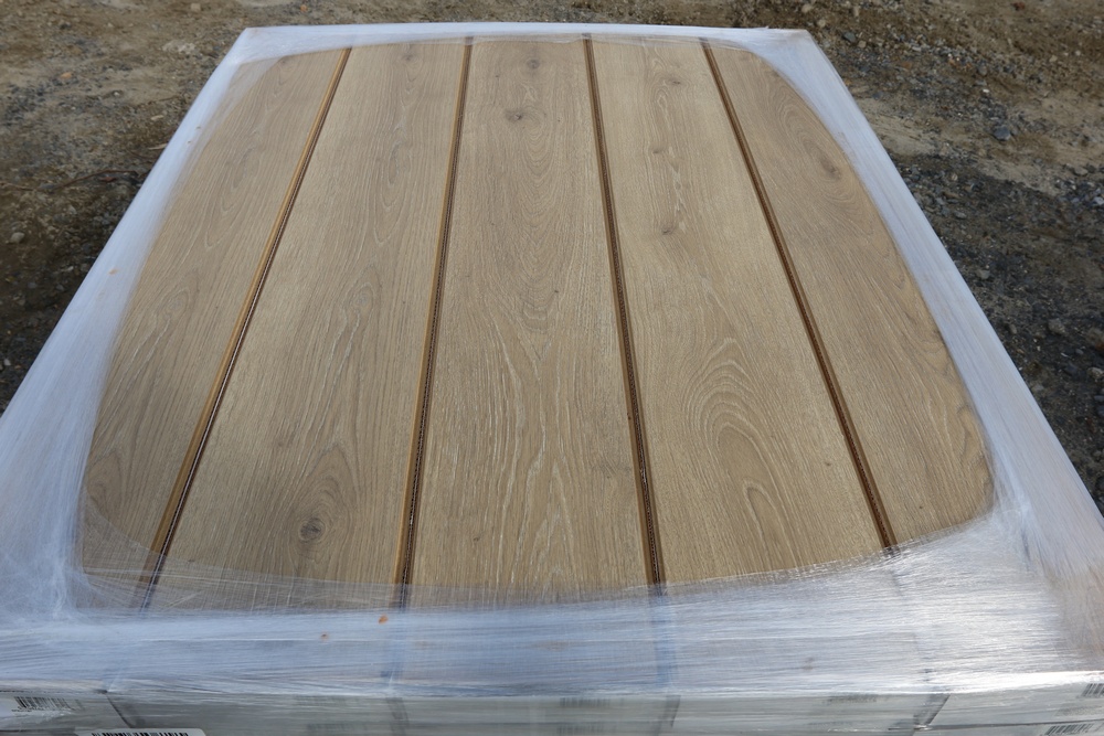 Lot is for 60 cartons of new laminate flooring. 12.27 square feet per carton. 736.20 total square feet. Manufacturer is Mohawk. Product is Revwood Select Boardwalk Collective Sand Dune. This product is Waterproof. Uni-Clic floating locking system. 2nd quality indicating up to 10% of product may have minor imperfections such as markings, off-shade, blister/missing spot of wood grain, sample board.