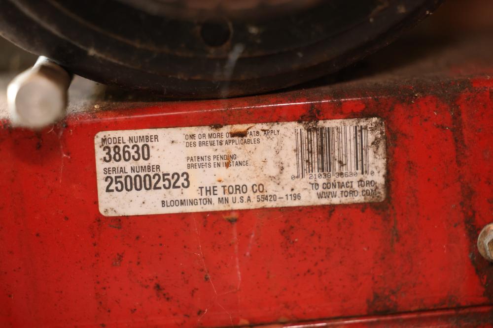 Toro 38630 Snow Blower with Tecumseh Snow King Engine, Model 250002523. Features manual controls, a robust auger system for snow removal, and a directional chute for snow discharge. The blower includes a gasoline-powered engine designed for efficient winter use. Pickup only.