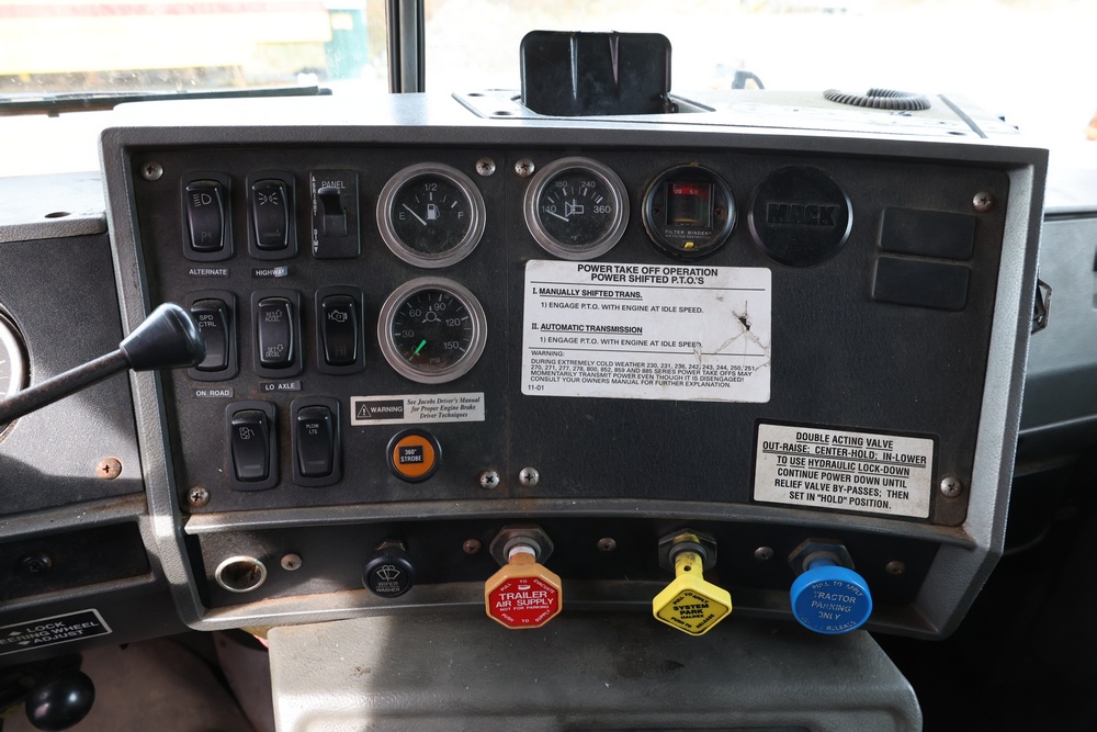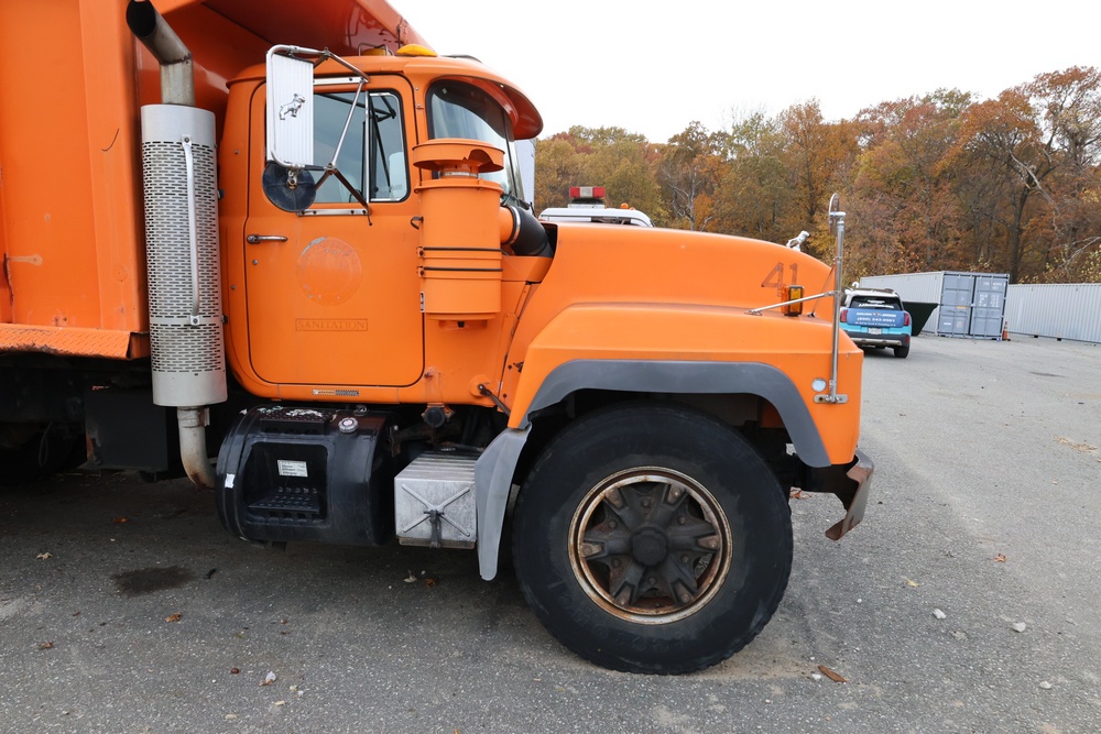 2004 Mack dump truck. VIN: 1M2P295C24M067337. Last reported odometer reading: 43192. Runs and Drives. Title & key available. Town markings will be removed prior to pickup. Excludes any current town radio equipment.