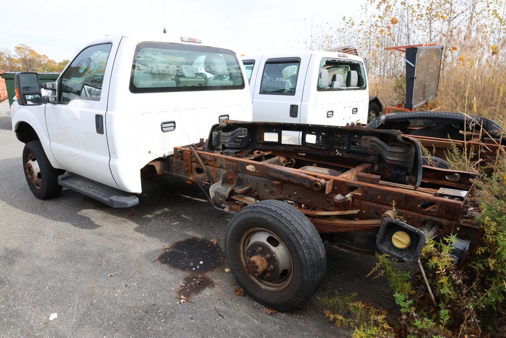 Items include 2014 Ford Fusion, 2015 Ford Fusion, 2012 Chevy Tahoe, 2010 Chevy Tahoe, 1990 Military Generator, 2003 GMC W4500 Box Truck, 2004 Mack dump truck, 2011 Ford F-350, 2014 Ford F-350, 2015 Ford Escape, 2001 International SCNV20 box van, Low Band 2-Way Radios, and more. Items are located in Irvington NY.