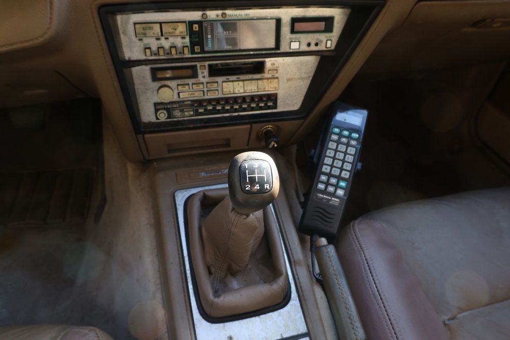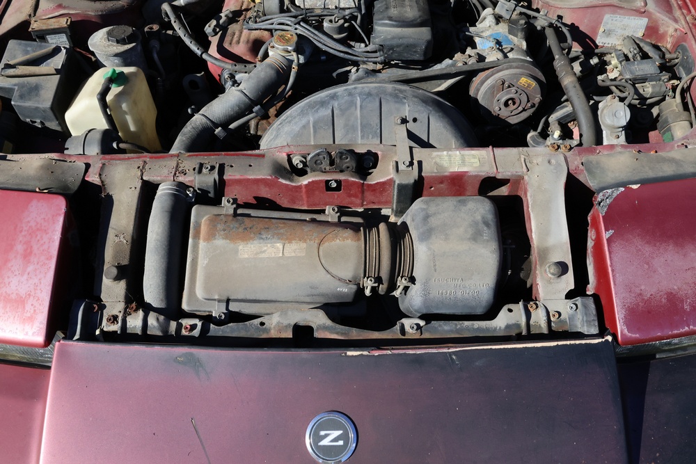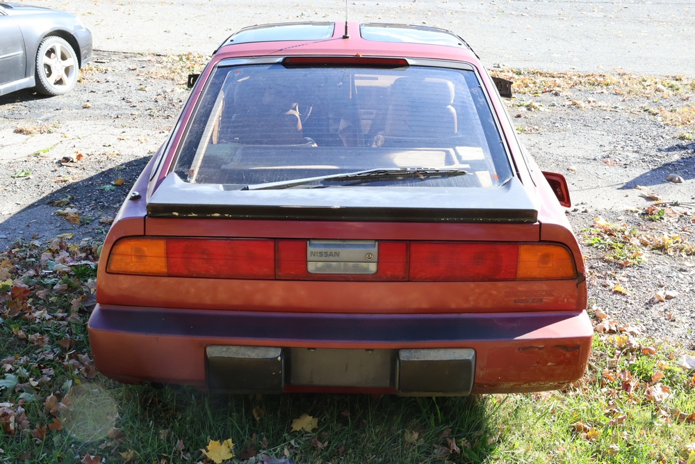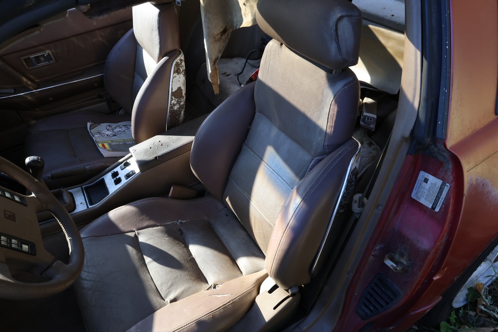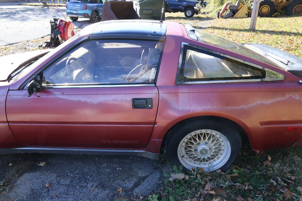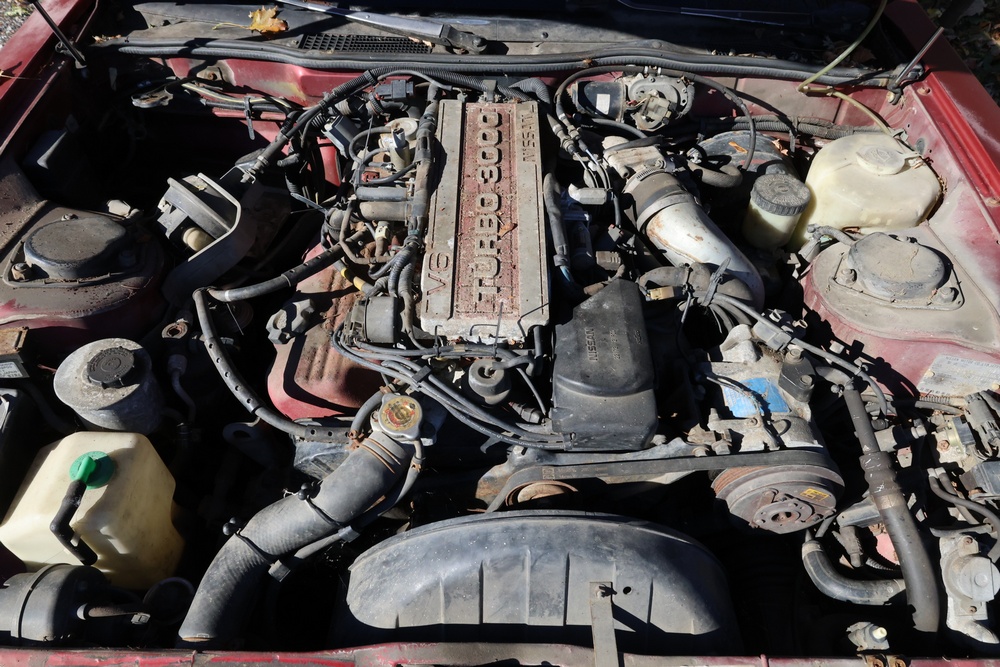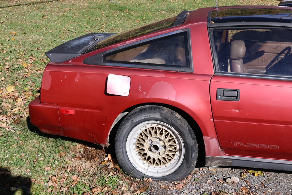 1986 Nissan 300ZX 2-door coupe with 5-speed manual transmission. VIN: JN1CZ14S3HX151067. Odometer reading: 69,521 miles. Exterior: Burgundy paint with pop-up headlights, alloy wheels, side mirrors, and Z emblem on the hood. Interior: Brown leather seats, digital climate control, factory AM/FM cassette stereo with equalizer, mobile phone, and 5-speed floor shifter. Tire configuration: Standard coupe with alloy wheels. Additional equipment includes T-top roof, power accessories, and analog instrument cluster. Title and key available. Seller reports: Ran, drove, and dealer maintained when last used in the early 2000s.