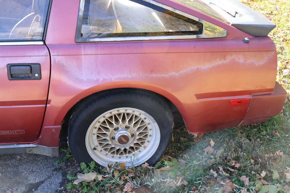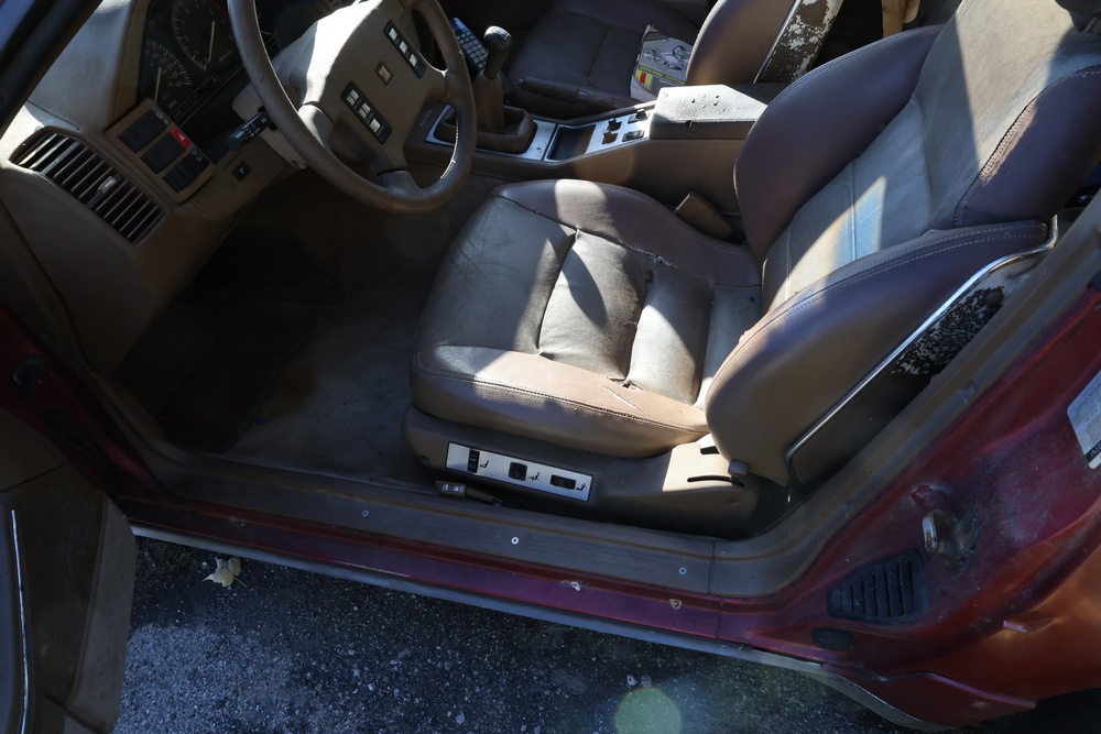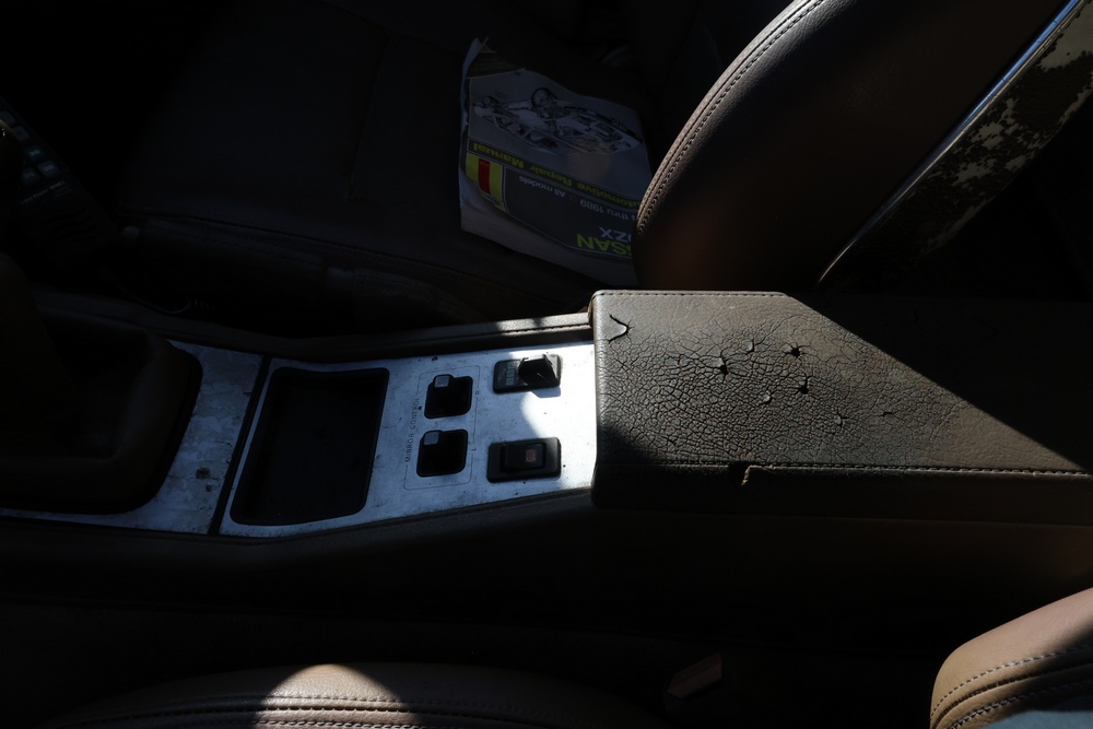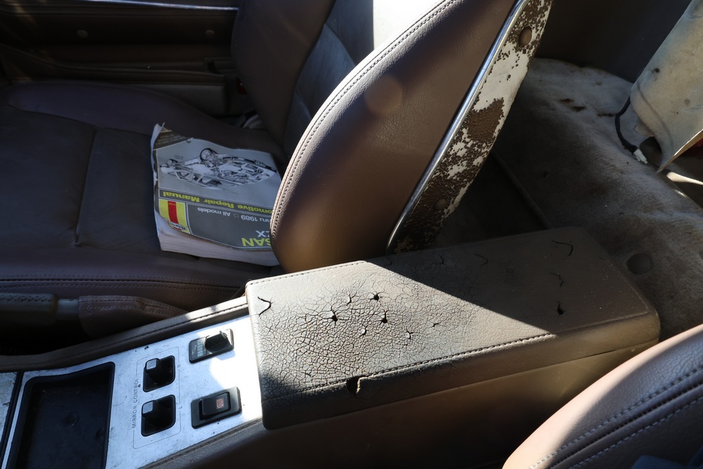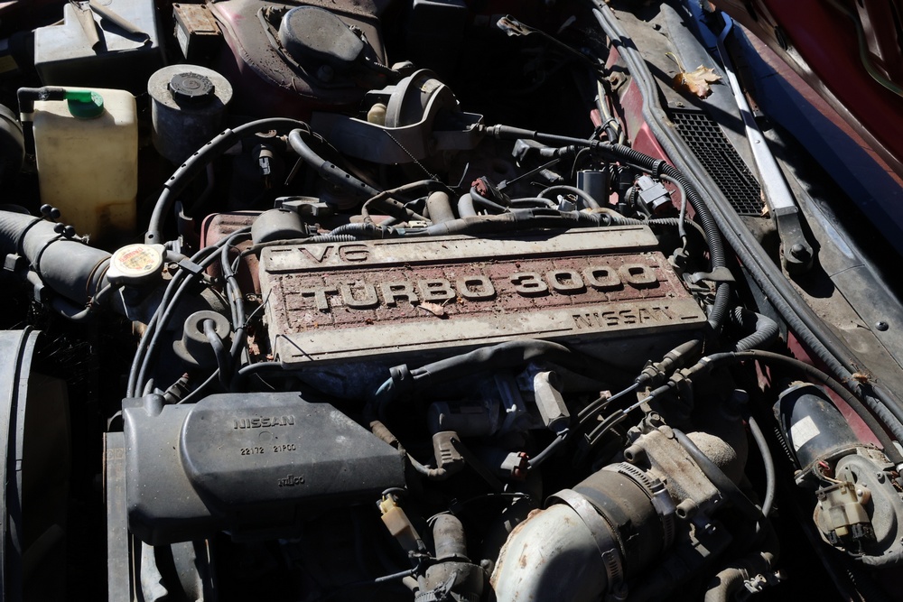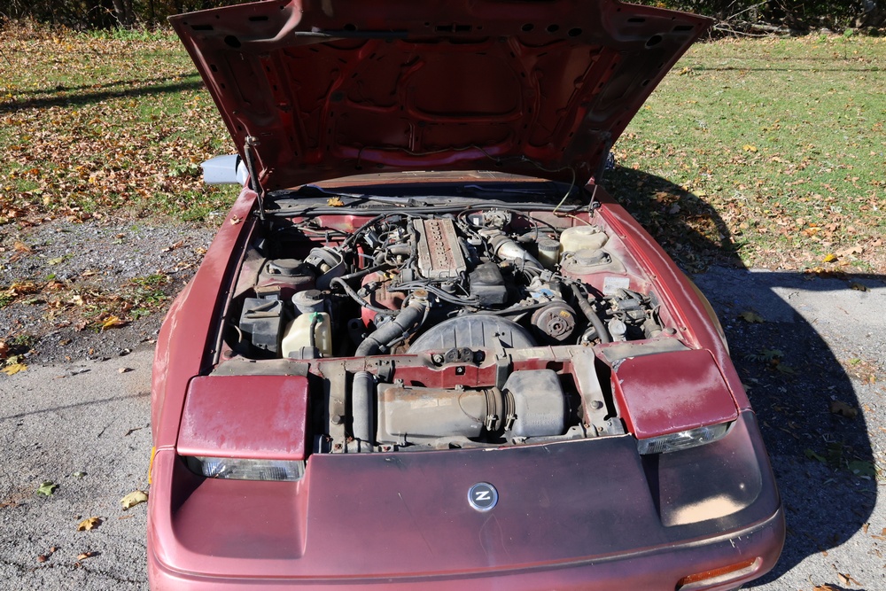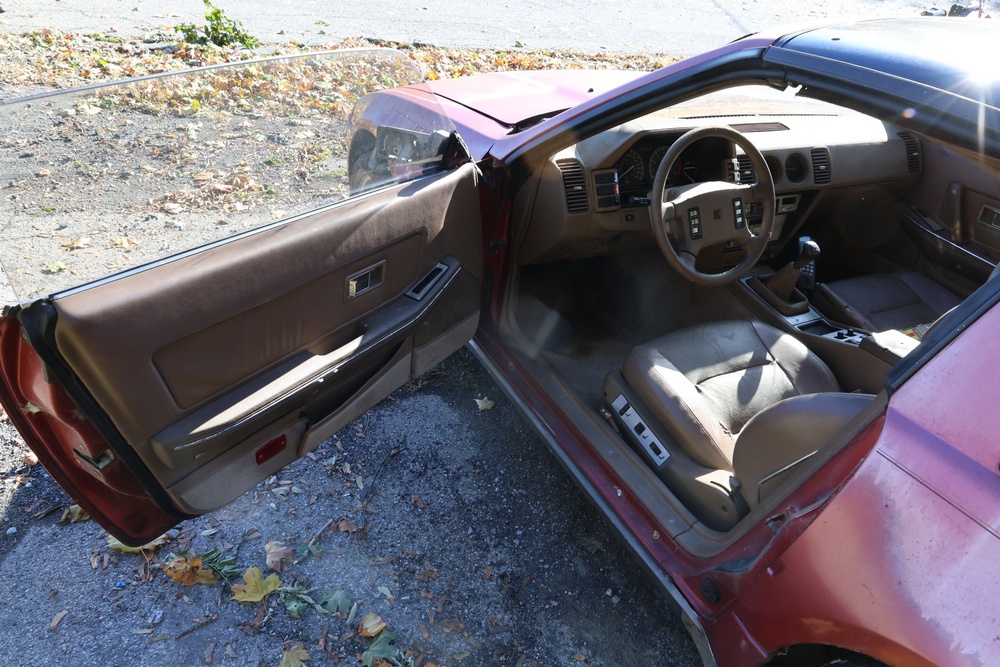 1986 Nissan 300ZX 2-door coupe with 5-speed manual transmission. VIN: JN1CZ14S3HX151067. Odometer reading: 69,521 miles. Exterior: Burgundy paint with pop-up headlights, alloy wheels, side mirrors, and Z emblem on the hood. Interior: Brown leather seats, digital climate control, factory AM/FM cassette stereo with equalizer, mobile phone, and 5-speed floor shifter. Tire configuration: Standard coupe with alloy wheels. Additional equipment includes T-top roof, power accessories, and analog instrument cluster. Title and key available. Seller reports: Ran, drove, and dealer maintained when last used in the early 2000s.