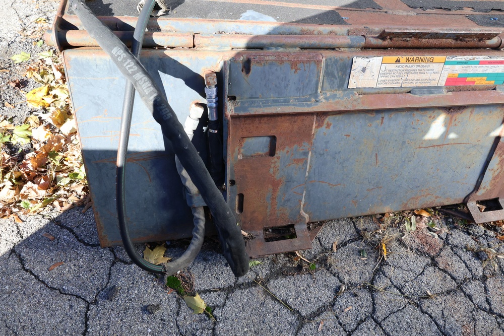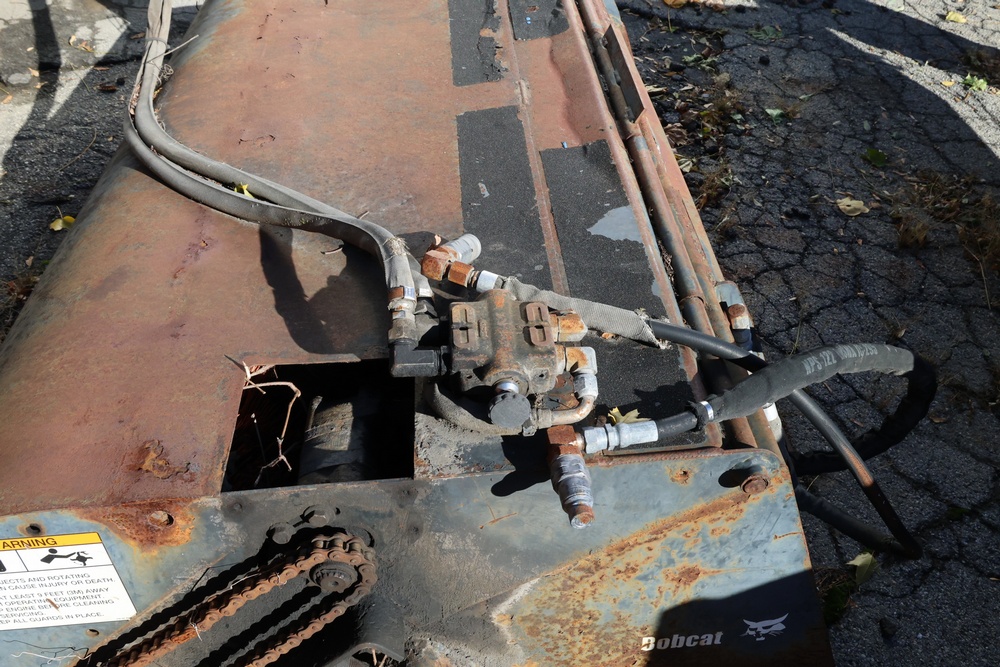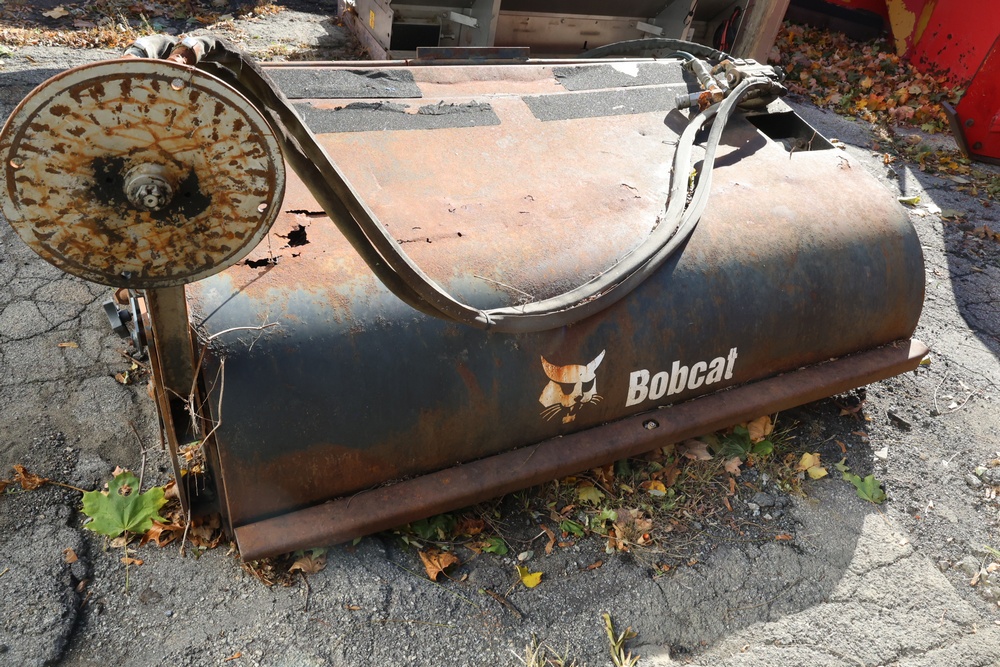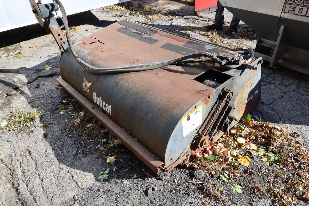 Bobcat Sweeper 72 attachment manufactured in West Fargo, North Dakota, USA by Ingersoll Rand (IR) Bobcat. The serial number is 783709679. This 72-inch hydraulic sweeper attachment is designed for use with compatible Bobcat loaders and includes a chain-driven broom mechanism and debris collection system. Unknown if operational.