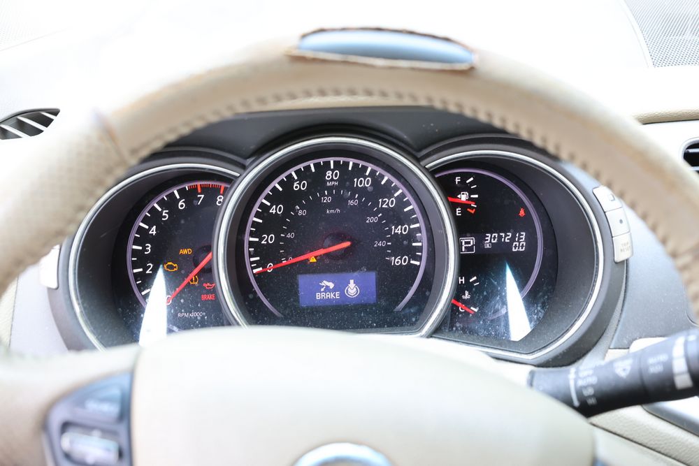 2011 Nissan Murano LE AWD. VIN: JN8AZ1MW5BW159552. Odometer reading: 307,213. Engine: 3.5L V6 DOHC 24V gasoline. Transmission: Automatic. Exterior: Brown. Interior: Beige leather, touchscreen display, navigation, dual-zone climate control, push-button start, multifunction steering wheel. Tire Size: P235/55R20. Seating: 5 passengers. Seller reports: Has bad transmission. Has brand new tires, brakes. Title and key available. Does not drive, transmission issues. Ran when parked, unable to start on the day of photography. May have dead battery at time of pickup. Must Be Towed.