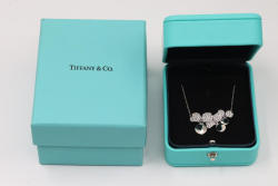 New Tiffany & Co. Platinum Necklace With Diamond Floral Pendant from "Paper Flowers" Collection. Crafted from PT950 platinum with a delicate chain and showcasing a floral motif encrusted with diamonds. The necklace includes original Tiffany & Co. packaging. Total weight being 9 grams total. Retail value of $7,000.