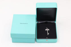 New Tiffany & Co. Platinum "Enchant" Key Pendant with Diamonds and Ruby. This intricately designed key-shaped pendant is crafted from platinum and features numerous diamonds set throughout, with a single ruby accent at the center. Hallmarked with Tiffany & Co. and Pt950. Excellent condition and presented in the original Tiffany & Co. box. Total weight being 4.8 grams. Retail value of $8,500.