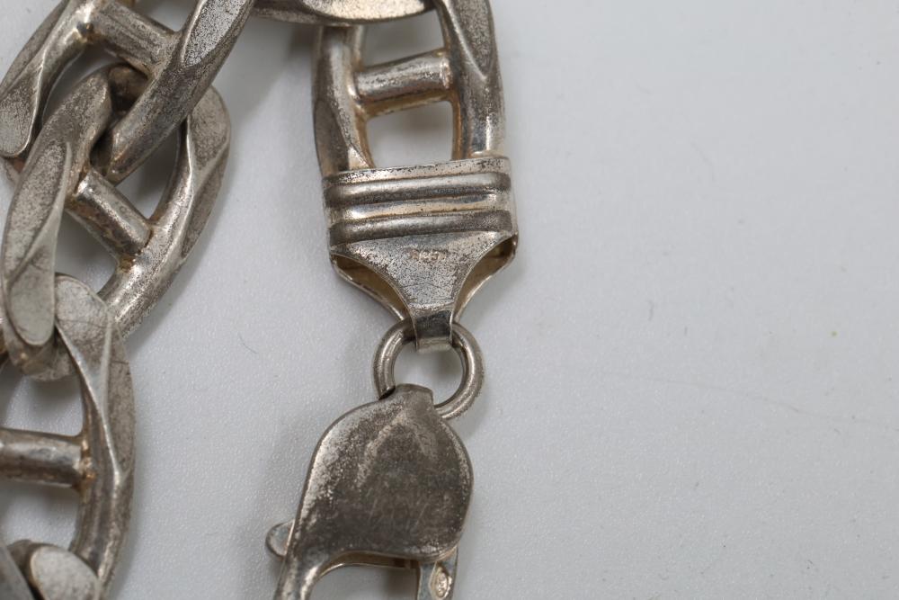 Sterling Silver 925 Figaro Chain Bracelet with Lobster Clasp. Marked 925 for sterling silver content. Features a Figaro-style chain design with a secure lobster clasp for easy wear. Total weight being 42 grams.