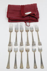 12 Sterling Silver Forks Monogrammed with 'W'. Each fork features a monogrammed 'W' on the handle and a sterling silver hallmark. Total weight being 475 grams.