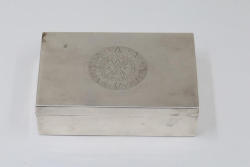 Sanborns Mexico Sterling Silver Box with Engraved Compass Design. Features a detailed compass design on the lid and a wooden interior lining. The box is marked on the underside with 'Sanborns Mexico Sterling.' Total weight being 292 grams.