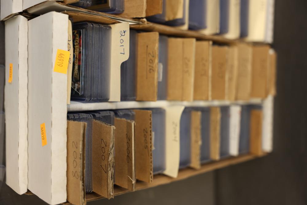 Topps New York Yankees baseball cards ranging from 1964 to 2018. Includes a signed 1978 Jay Johnstone card. The collection is organized in boxes by years, including numerous cards across decades, featuring players and highlights of the Yankees. Cards are in a mix of conditions. Pickup only.