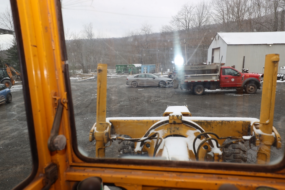 Items include 2021 Case 580SN Backhoe Loader, 1982 John Deere 570A Grader, 2003 Case 580M Series 2 Backhoe Loader, 2003 International WorkStar 7500, 1978 John Deere 570A Grader, Tenco plow, and salt spreaders. Items are located in Arkville, NY.
