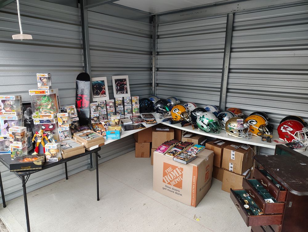 Contents of a 10'' x 10' storage unit being sold by the storage unit owner. Items include sports memorabilia, collectibles, and other valuable items including 16 full-size autographed NFL helmets, all official Riddell Speed models licensed through the NFL. The autographs can be verified by Fanatics, Beckett, JSA, or Radtke Sports. Some of the players featured are Jeff Okudah, Kerryon Johnson, Mike Evans, Christian McCaffrey, James Conner, Sam Darnold, DJ Moore, Russell Wilson, Davante Adams, N'Keal Harry, Alshon Jeffery, Joe Montana, and Tyreek Hill. There are also several Funko Pops, Dragon Ball Z figures, and other action figures. There are about 4,000 Magic: The Gathering cards, a Five Nights at Freddy's statue with related books, and other comics and reading materials; jewelry armoire with costume jewelry, some silver pieces, and several watches; Lynyrd Skynyrd concert poster with ticket stubs The functionality of electric/electronic items are unknown. The authenticity of items are unknown/have not been checked. The unit is located in Craryville, NY.