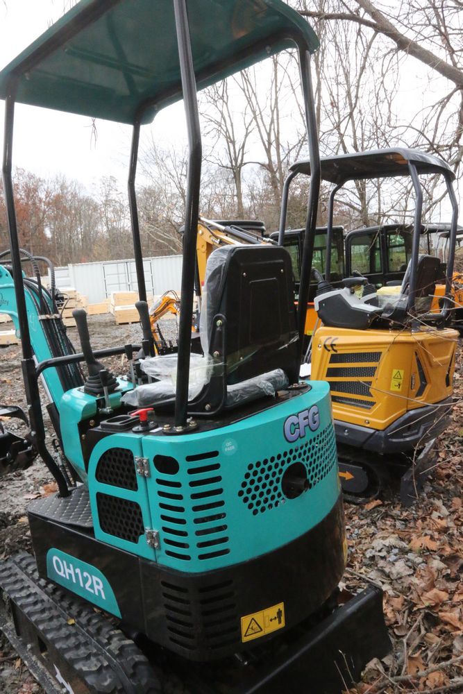New 2025 CFG Industrial gas powered mini Excavator model QH12R with 420cc gasoline engine, bucket, 4' long tracks, 36.5" wide base, 6" wide tracks, canopy, hydraulic boom & bucket controls, dozer blade. Hours reading less than 1 hour.